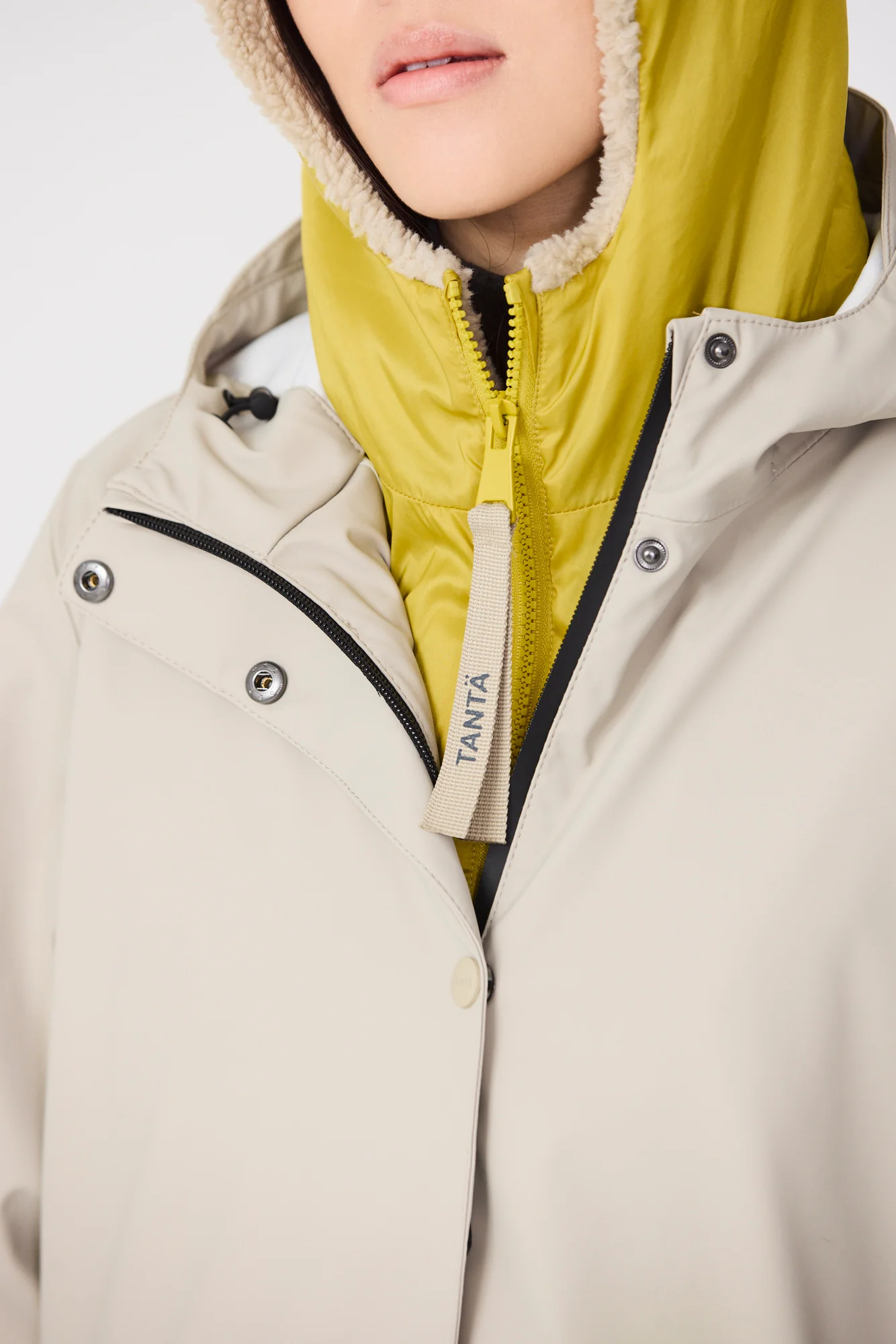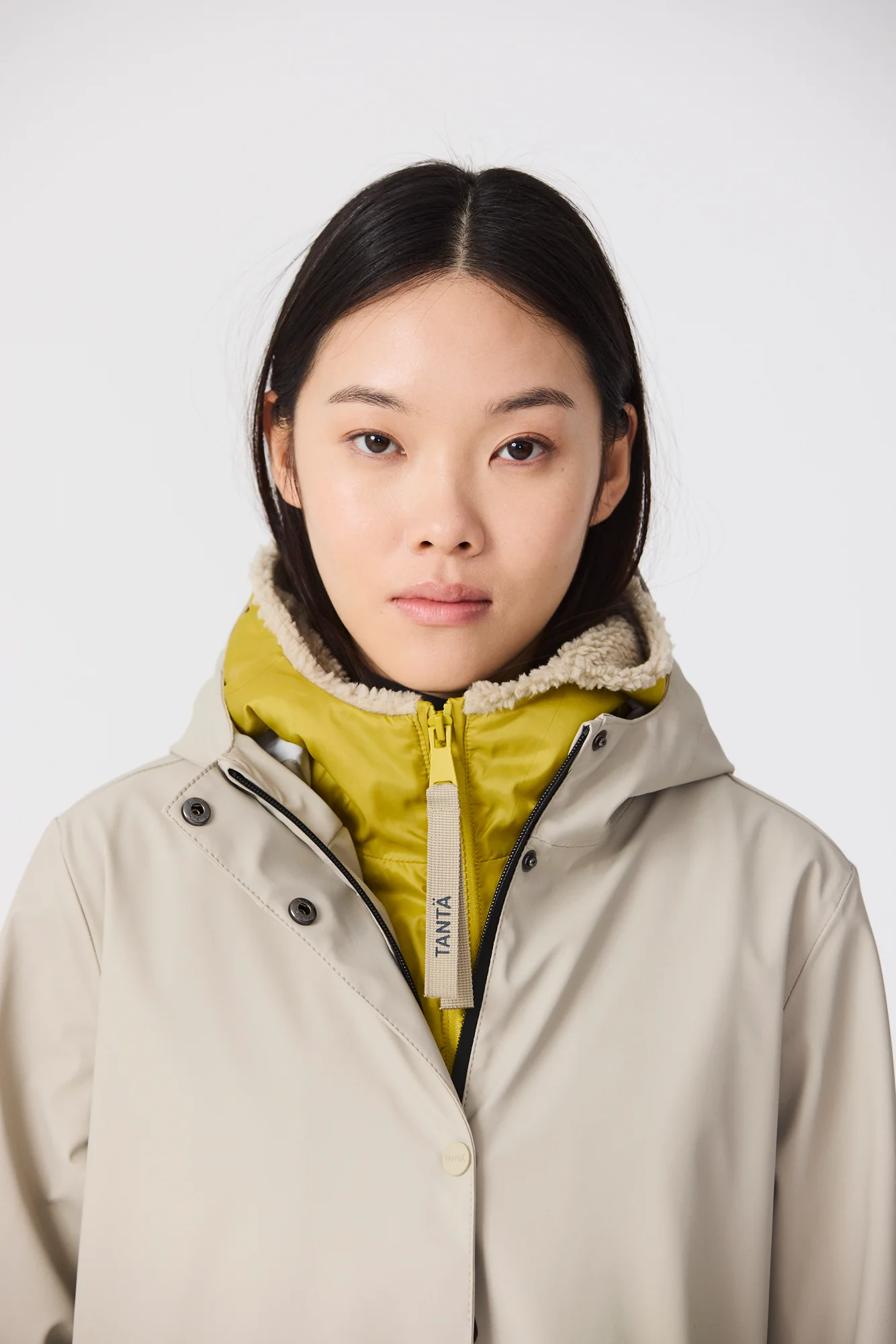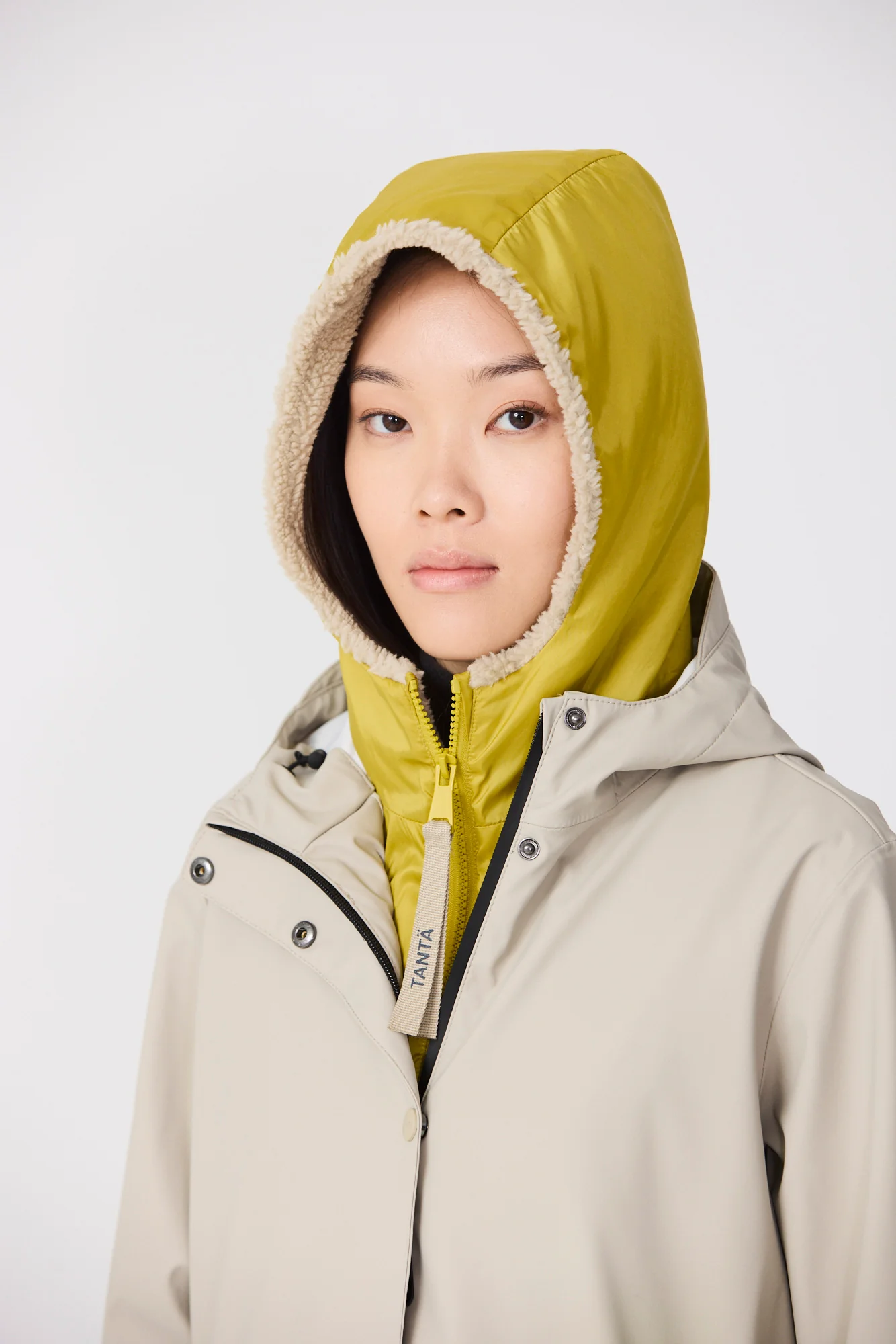 El exterior, confeccionado en nylon 100%, contrasta a la perfección con el interior de sherpa suave y envolvente, que brinda una sensación de abrigo y confort.