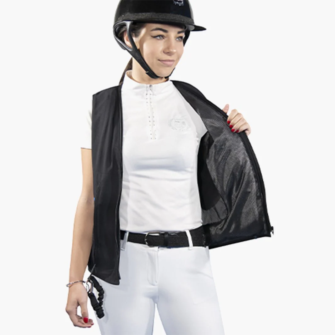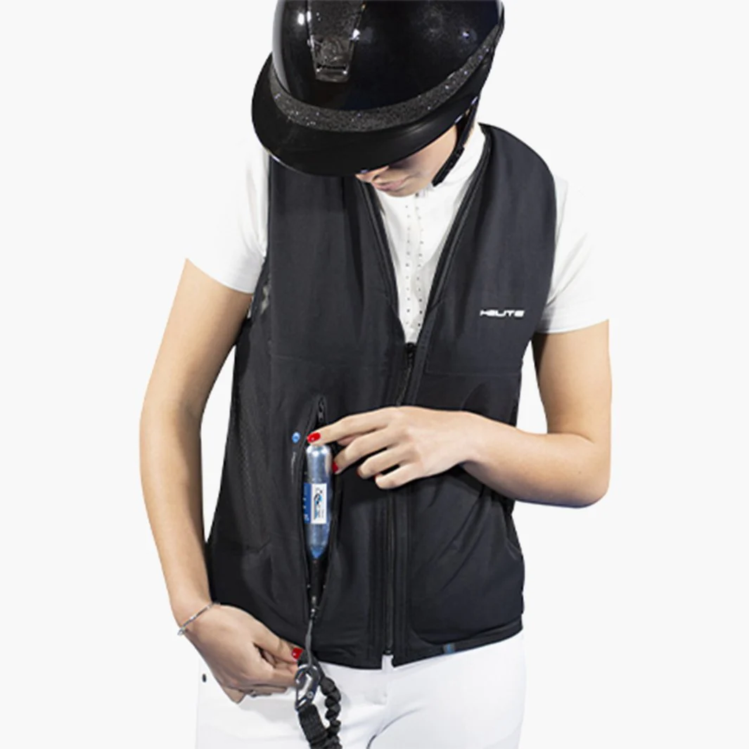 ,Le Gilet Airbag ZIP’IN 2 de Helite réinvente la sécurité équestre en associant légèreté, facilité d’utilisation et protection maximale. Avec seulement 650 g, ce gilet sans manches offre une liberté de mouvement exceptionnelle tout en garantissant une protection rigoureuse des zones vitales en cas de chute. Sa silhouette discrète permet de le porter seul ou d’en faire un airbag invisible, parfaitement dissimulé sous une veste homologuée Zip’In.