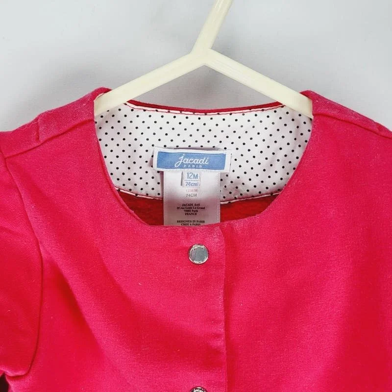 Offrez douceur et élégance à votre bébé avec ce joli gilet rose Jacadi, taille 12 mois. Conçu en maille fine et délicate, il est parfait pour réchauffer les tenues tout en apportant une touche raffinée. Sa coupe confortable et ses finitions soignées en font une pièce idéale pour le quotidien ou les occasions spéciales. Facile à enfiler grâce à ses boutons sur le devant, il s’adapte à toutes les silhouettes. Son coloris rose tendre s’accorde parfaitement avec robes, jupes ou pantalons. Issu de la seconde main, ce gilet est en parfait état, soigneusement sélectionné pour offrir une seconde vie aux vêtements de qualité. Un choix responsable et économique pour habiller votre enfant avec élégance. Ajoutez ce basique intemporel au dressing de votre bébé !