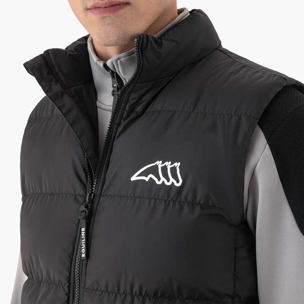 Le Gilet sans manches CAUC d’Equiline est un incontournable pour les cavaliers exigeants qui veulent allier chaleur, confort et élégance. Conçu pour l’homme actif, il vous suit aussi bien durant les entraînements à cheval que dans le travail en écurie — et même au quotidien en ville. Le gilet offre une isolation efficace sans compromis sur l’esthétique, grâce à son design discret et son logo Equiline sur la poitrine.