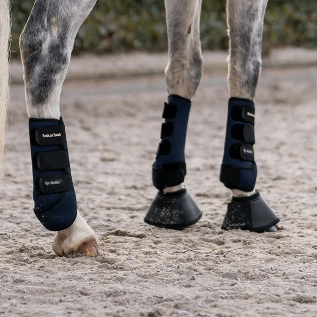 Au-delà de leur fonction protectrice, ces guêtres sont une alternative pratique et rapide aux bandages. Elles se posent en quelques instants, réduisent le temps de préparation et évitent les nœuds ou les plis typiques des bandages, tout en offrant un maintien sûr et confortable pendant l’entraînement.