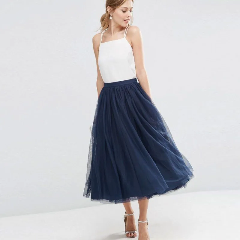 Que ce soit pour une sortie décontractée ou un événement formel, la jupe tulle bleu marine répond à toutes vos exigences. Elle s’associe facilement à divers styles, rendant votre préparation quotidienne aussi simple qu’élégante.