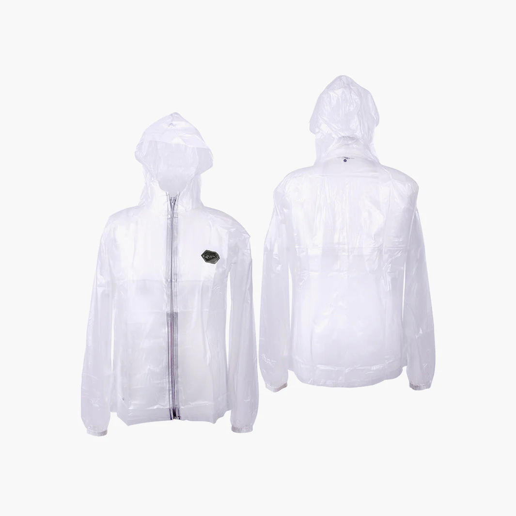 K-way imperméable pour l’équitation. Parfait pour garder vos vêtements de compétition au sec. Également utilisable pour l’équitation en plein air. Composition : PVC Imperméable transparent léger avec capuche Réutilisable Fermeture éclair sur le devant Elastique à l’extrémité des manches