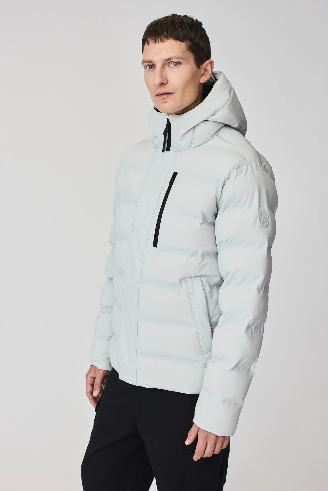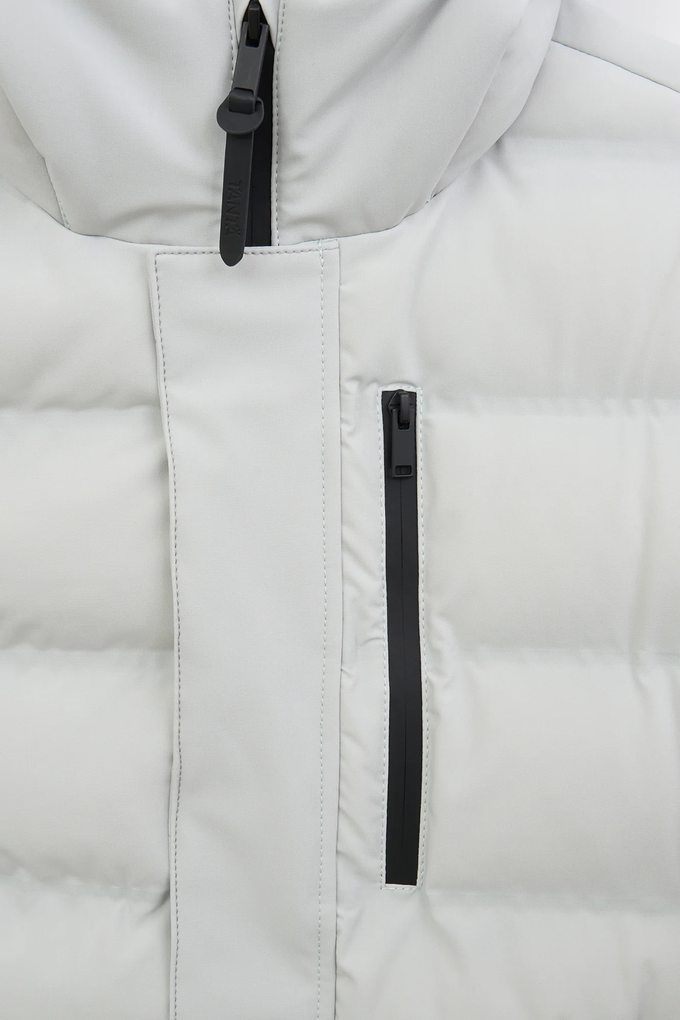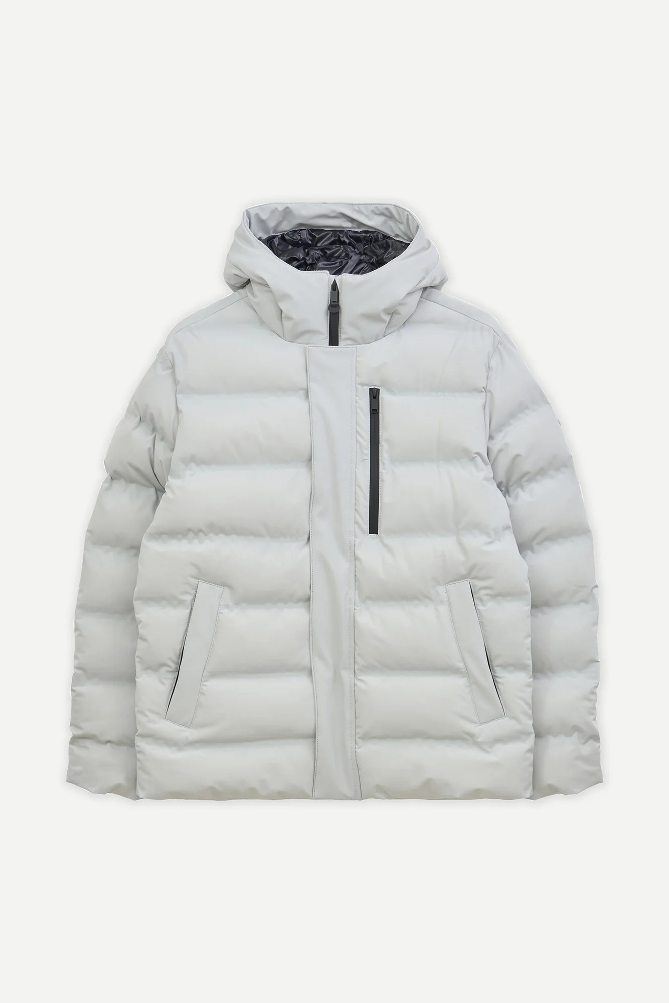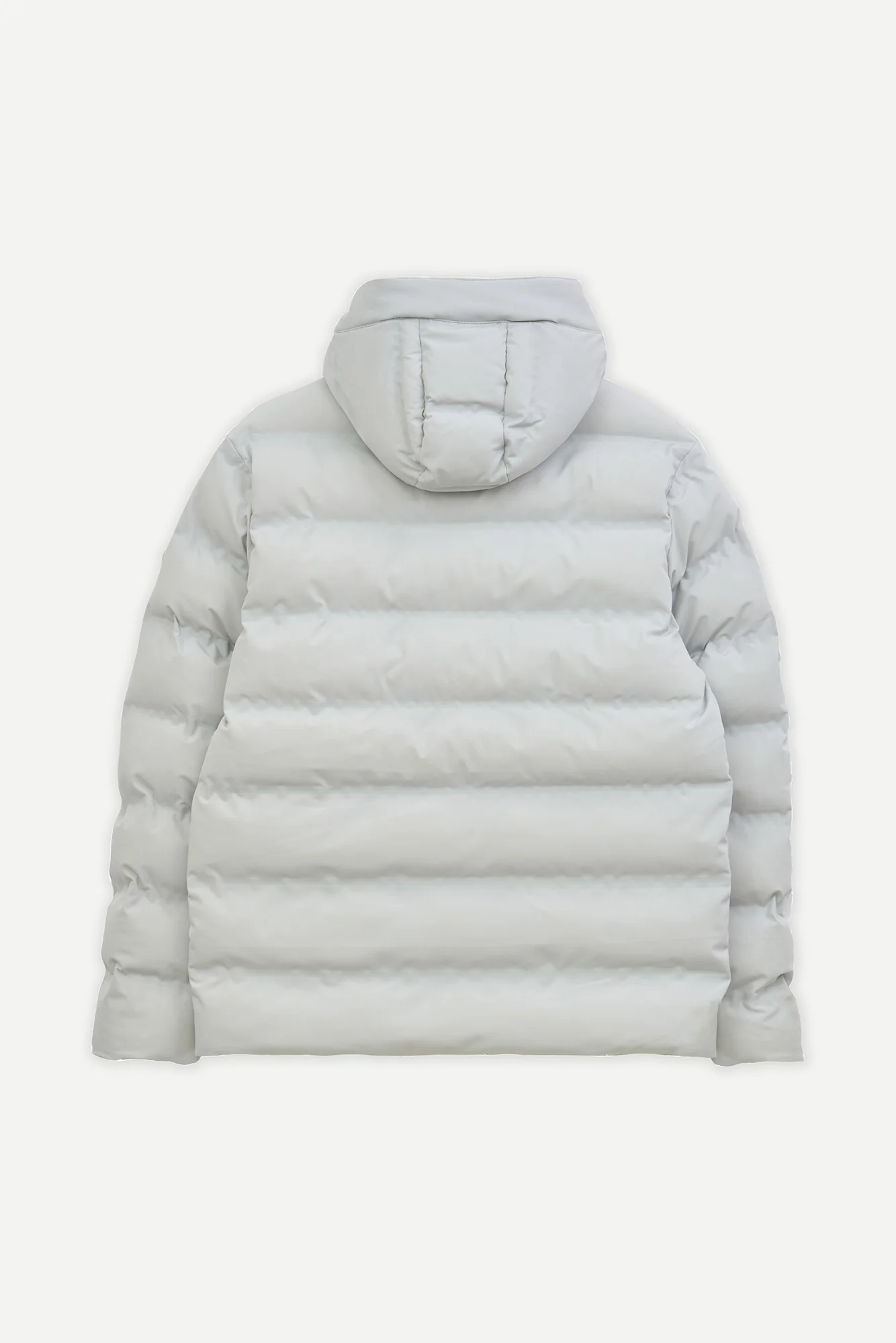 Los detalles de diseño incluyen un bolsillo en el pecho con cremallera impermeable en contraste negro, una cremallera frontal impermeable de doble cursor oculta y una solapa con cierre magnético. Una interpretación fresca, juvenil y sofisticada del sportswear urbano contemporáneo.