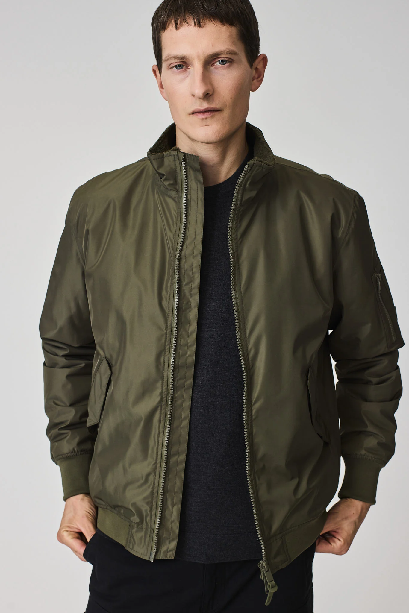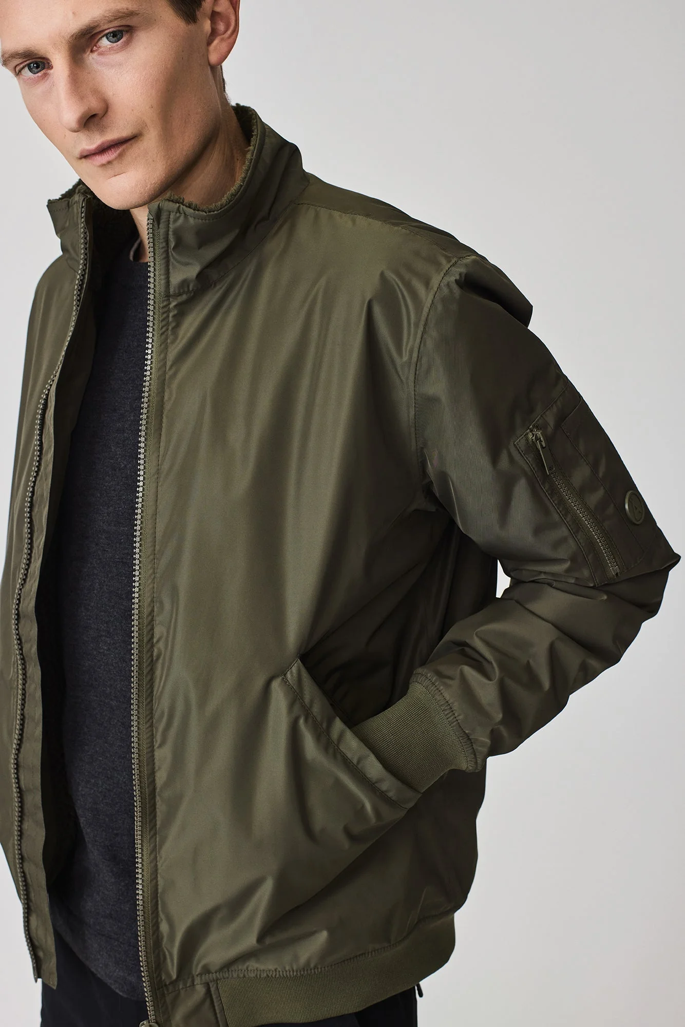 Entre sus detalles de diseño se incluyen bolsillos con solapa, puños y bajo de canalé, y una cremallera frontal impermeable de doble cursor, que combinan estilo y versatilidad sin esfuerzo.