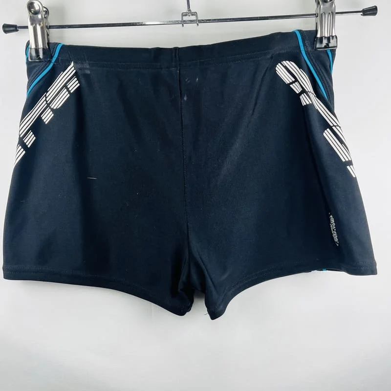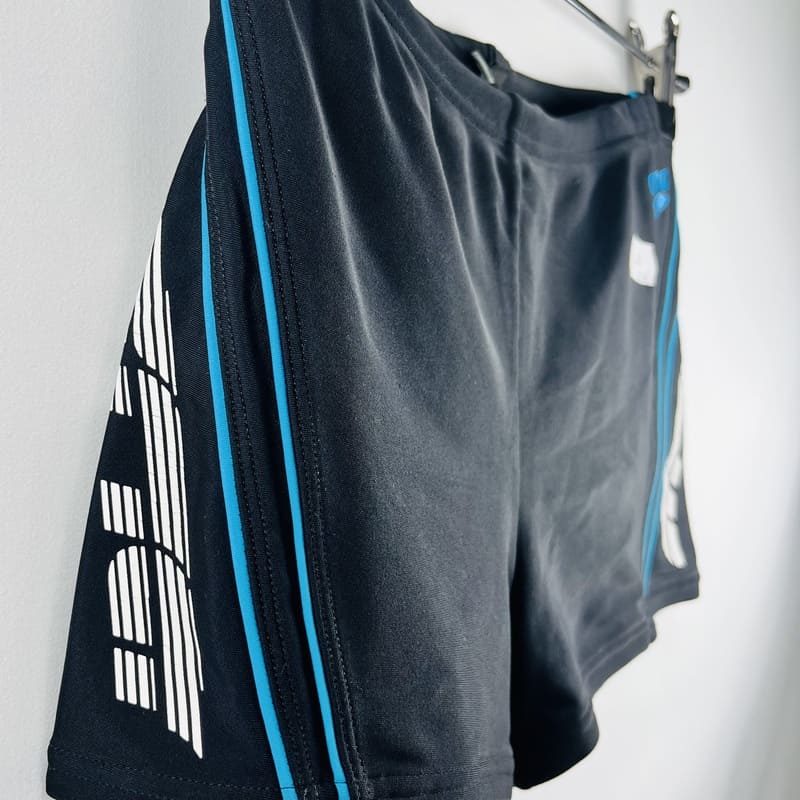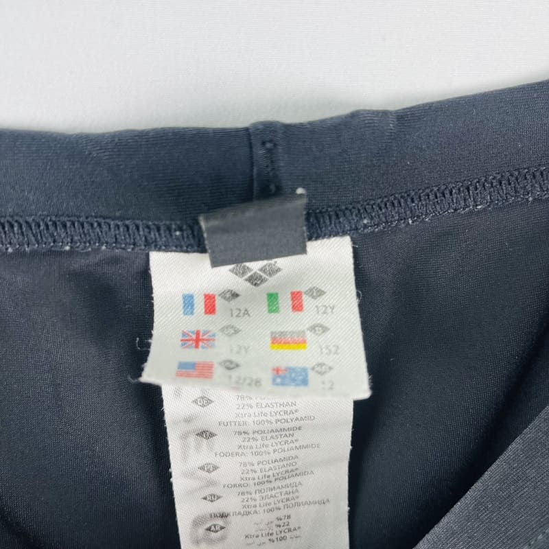 Maillot de bain Arena bleu et noir, taille 12 ans. Idéal pour la piscine, résistant au chlore. Petit prix pour les jeunes nageurs !