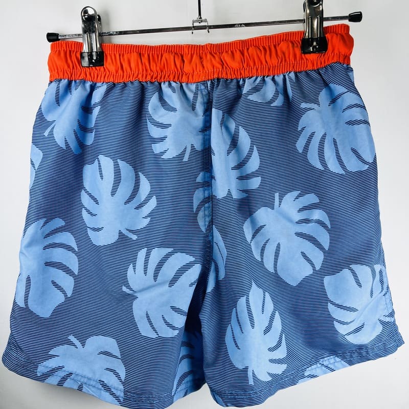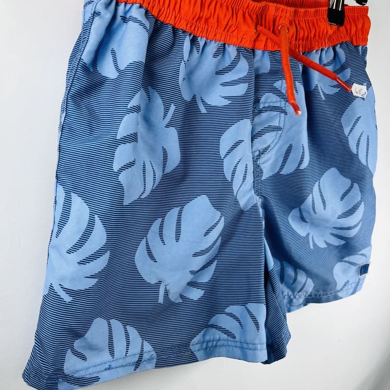 Maillot de bain short bleu à motif feuilles, Okaïdi, taille 10 ans. Léger, confortable et séchage rapide. Un look tropical à petit prix !