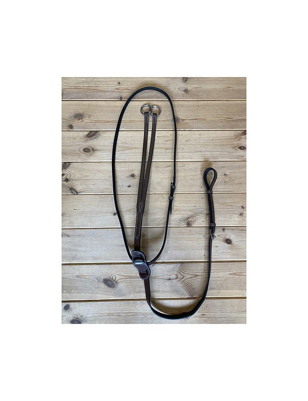 La martingale à anneaux de la Collection One par Jump’In s’utilise pour limiter que le cheval ne sorte de la main du cavalier. Elle est rehaussée de surpiqûres en contraste crème et de deux anneaux pour y glisser chaque rêne.