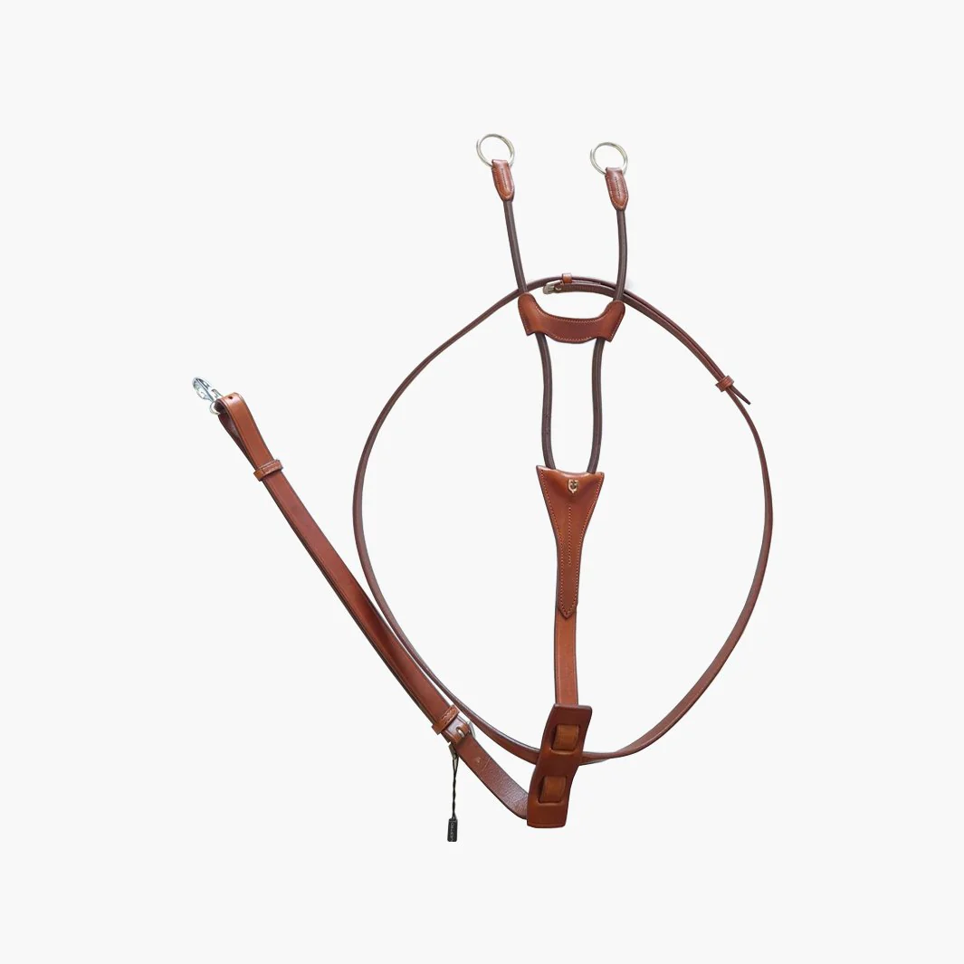 Nettoyez régulièrement avec un chiffon doux et évitez les produits agressifs qui pourraient altérer le cuir. Après nettoyage, laissez sécher à l’abri de la chaleur directe et appliquez, si nécessaire, un conditionneur cuir adapté pour préserver souplesse et couleur. Conservez votre martingale dans un endroit sec et à l’abri de la lumière directe pour qu’elle conserve son éclat et ses performances au fil des saisons).