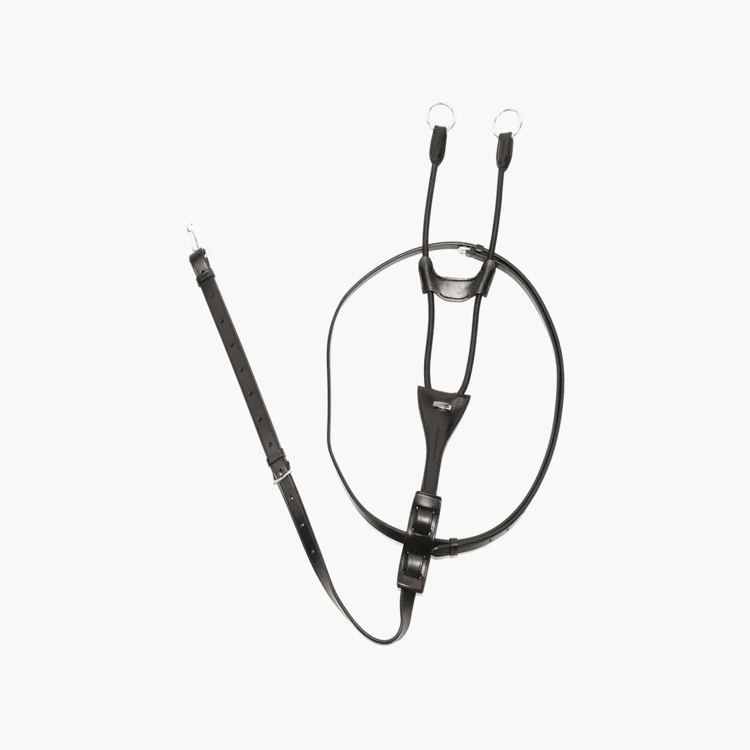 Découvrez la MARTINGALE ÉLASTIQUE A ANNEAUX signée EQUESTRO, une pièce d’équipement pensée pour apporter contrôle, sécurité et confort à votre équidé lors des séances. Confectionnée avec un cuir italien de grande qualité, elle associe souplesse et durabilité, prête à résister aux sessions les plus exigeantes.