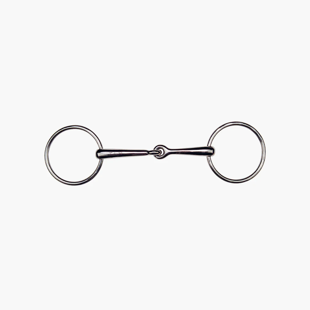 Conçu pour favoriser une communication subtile entre le cavalier et le cheval, ce mors en inox offre une action légère adaptée aux demi-mors et programmes de rééducation ou d’initiation. L’inox assure une surface lisse et une durabilité élevée, résistant à l’usure tout en restant facile à nettoyer entre les sessions d’entraînement.