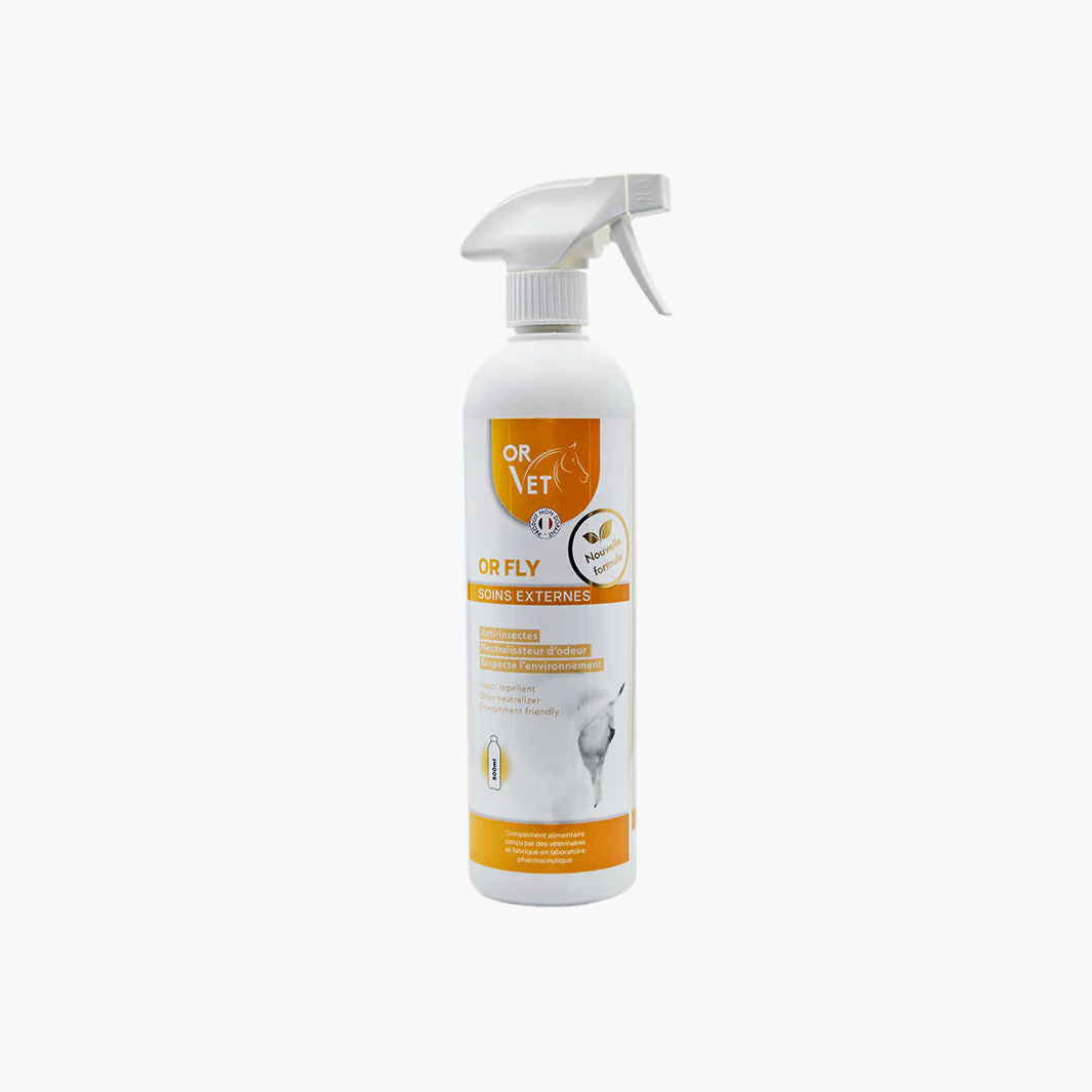 OR FLY NATURAL | OR-VET est bien plus qu’un simple spray antiparasitaire pour chevaux. Conçu comme une barrière 100% naturelle, il agit directement sur l’attirance des insectes en neutralisant l’odeur du cheval, rendant ce dernier “invisible” pour les tiques, taons et mouches. L’objectif: protéger, sans nuire, et préserver l’équilibre de l’écosystème.