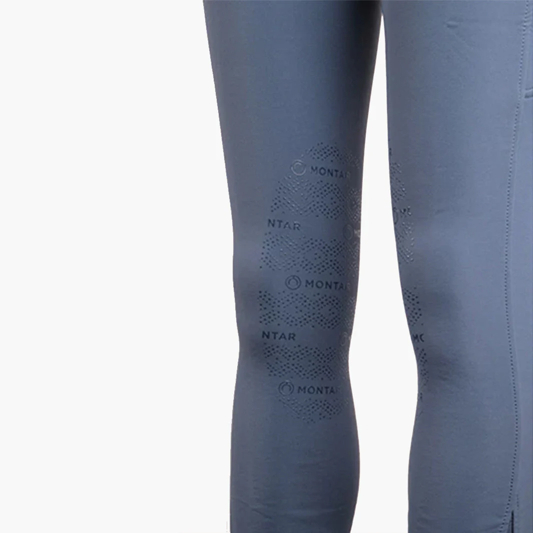 Un look premium, sans couture visible sur les logos. Les logos Montar sont réalisés directement dans le tissu et en relief, offrant une esthétique chic et durable qui résiste à l’usure du temps et des entraînements.