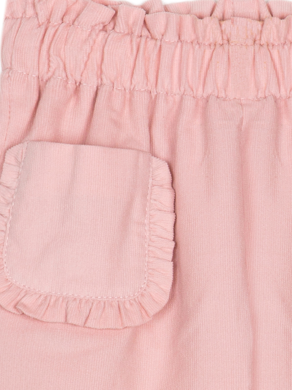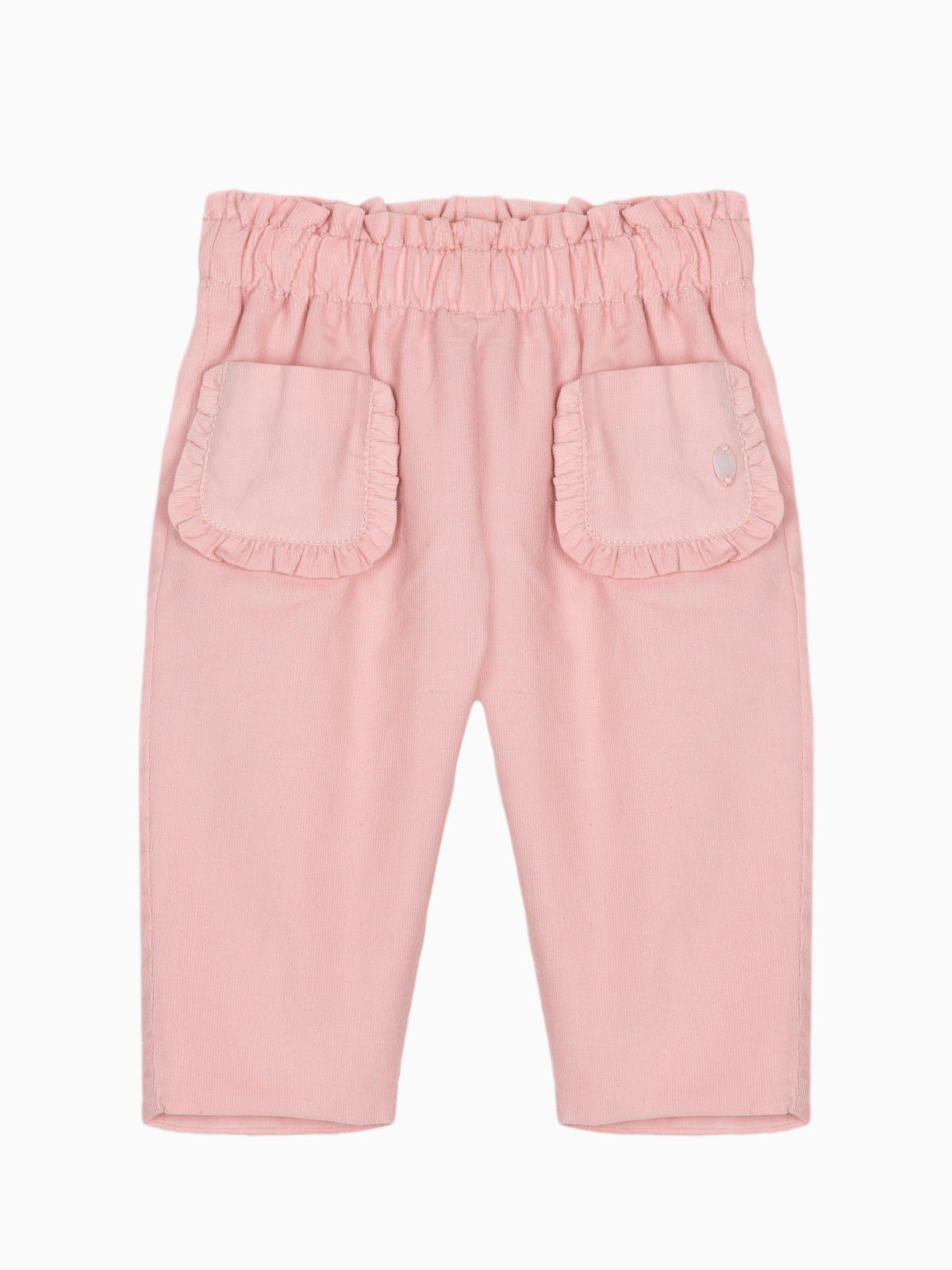 Offrez à votre bébé un vêtement à la fois confortable et raffiné avec ce pantalon en velours côtelé rose, pensé pour accompagner ses journées tout en douceur.