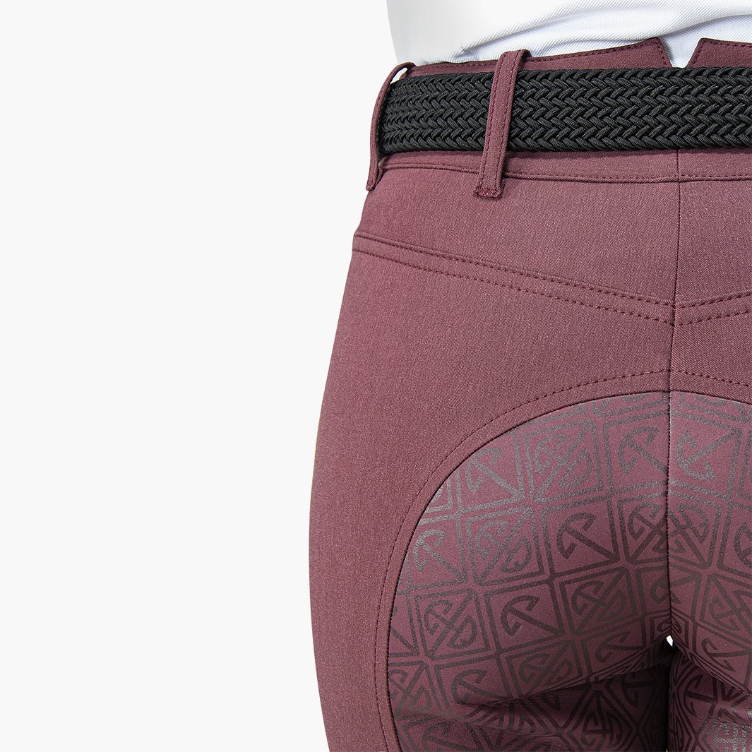 Le bas de jambe en lycra extensible épouse parfaitement la silhouette et garantit un enfilage facile, sans pli gênant sous les bottes. Cette finition pensée pour la morphologie féminine assure une coupe qui suit vos mouvements avec précision, pour que chaque phase du geste équestre reste fluide et naturelle.