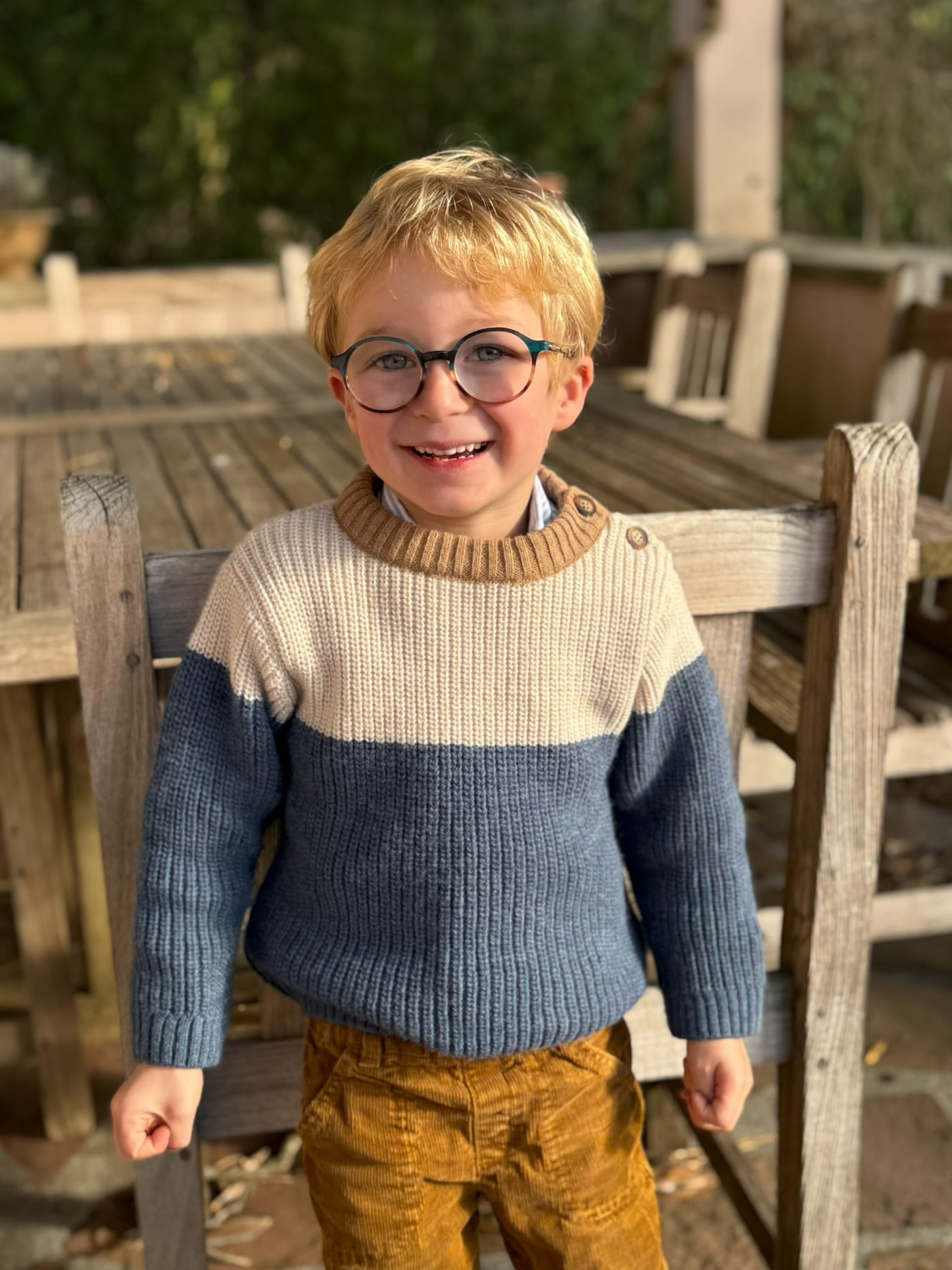 Pull enfant garçon – Bleu/beige