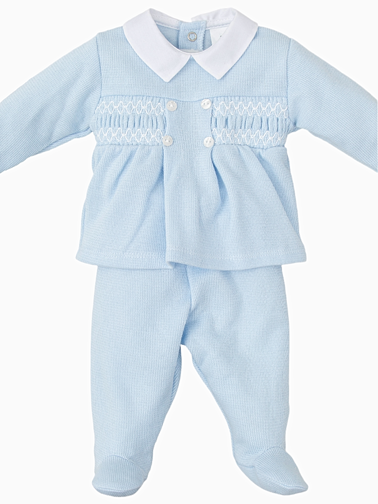 La couleur bleue de ce pyjama évoque la tranquillité de la nuit, créant une ambiance sereine propice au sommeil. Le col blanc et les smocks ajoutent une touche de pureté, rappelant la douceur des premiers jours de la vie. Ce pyjama est conçu pour envelopper votre bébé dans un cocon de tendresse, lui assurant des nuits paisibles et réparatrices.