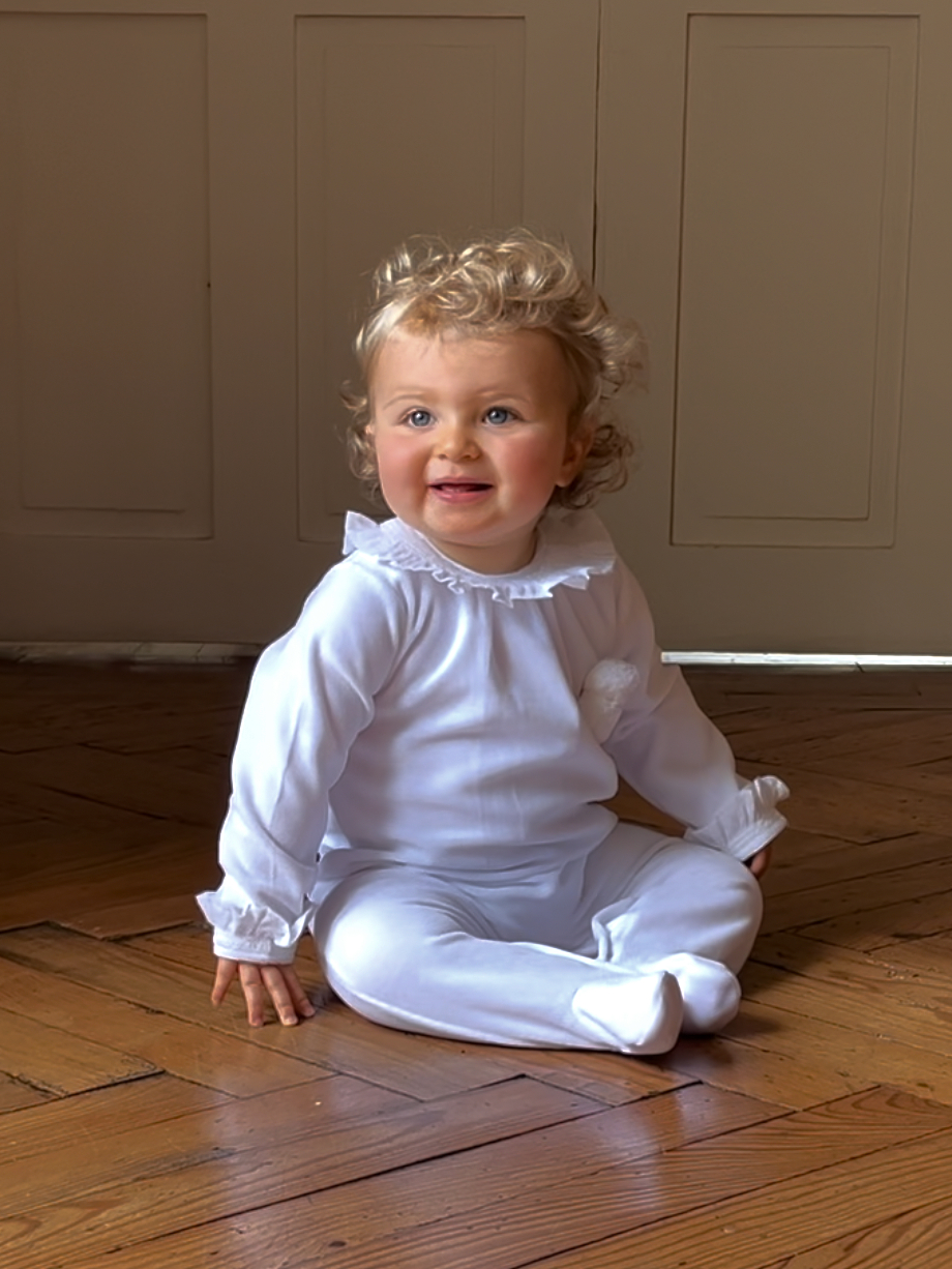 Offrez à votre enfant des nuits agréables dans notre pyjama bébé en velours blanc tout doux. Un choix intemporel qui ajoute une note de fantaisie à la routine du coucher de votre petit trésor.