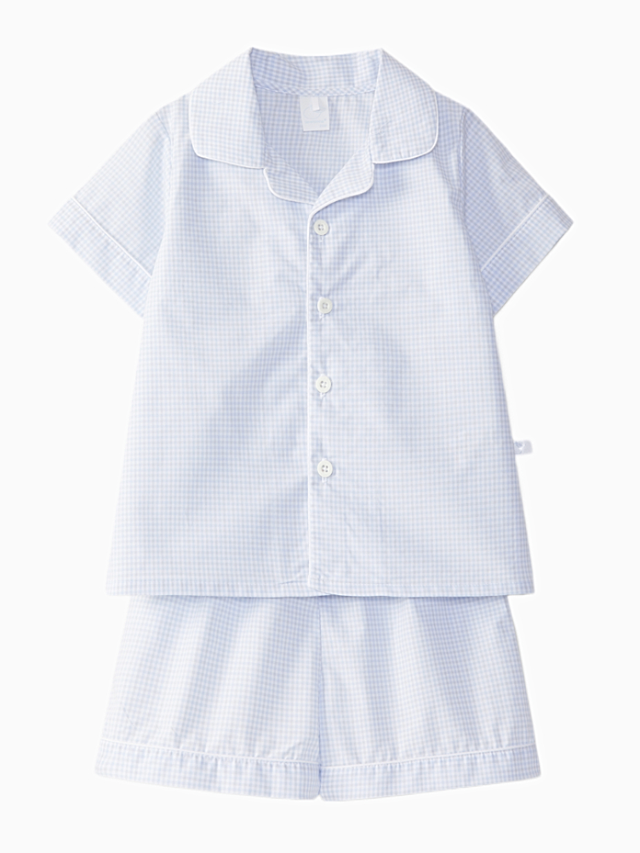 Pyjama garçon vichy – Bleu ciel/gris pâle