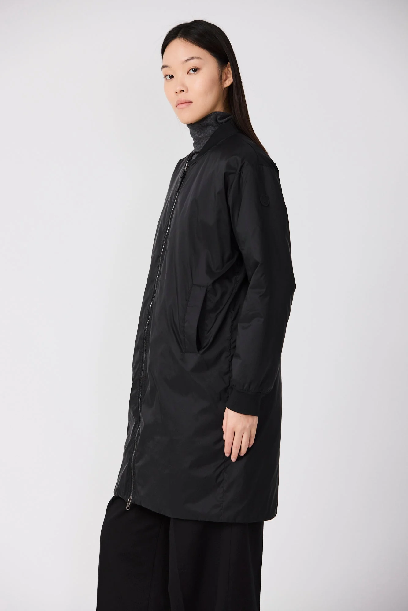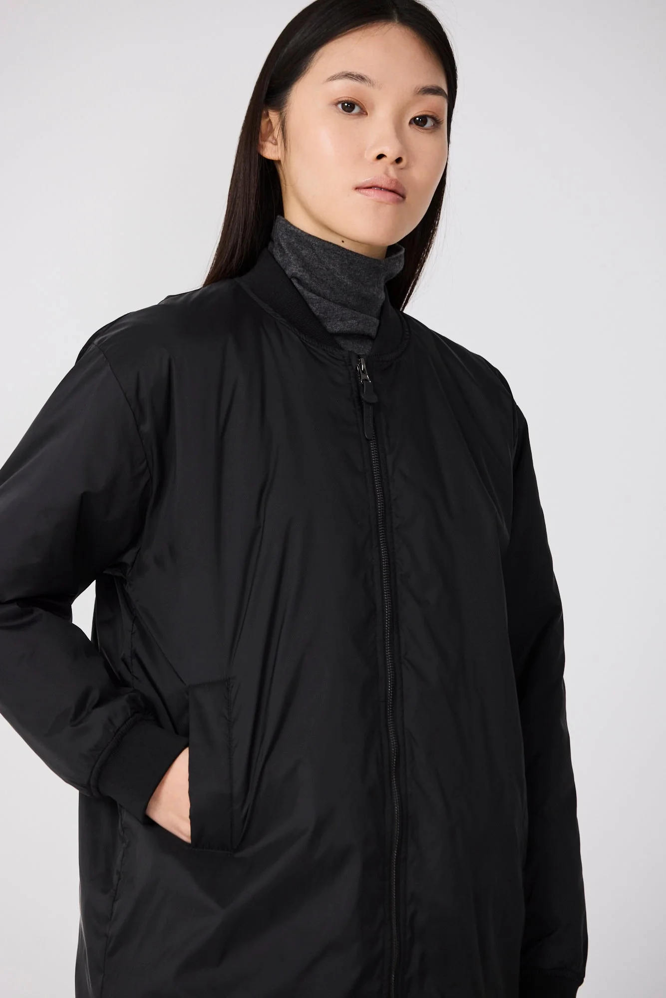 Confeccionada en nylon 100 % repelente al agua, la Pyouh es la versión larga de la chaqueta bomber Aandhee, que ofrece mayor cobertura sin perder el estilo limpio y atemporal. Ligeramente acolchada para proporcionar el abrigo justo, presenta detalles clásicos de bomber como puños y cuello de canalé, cremallera metálica frontal de doble cursor y bolsillos ribeteados.