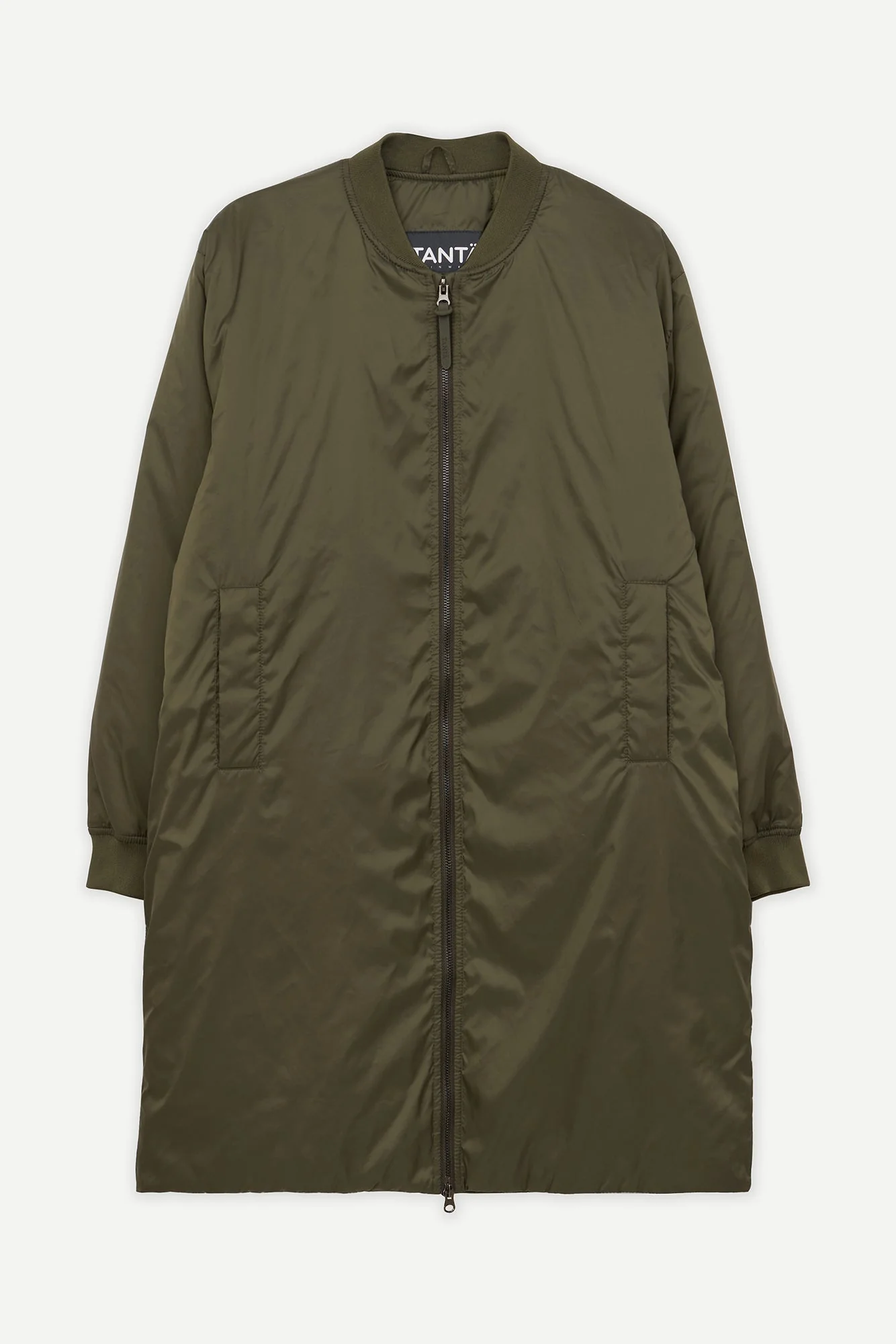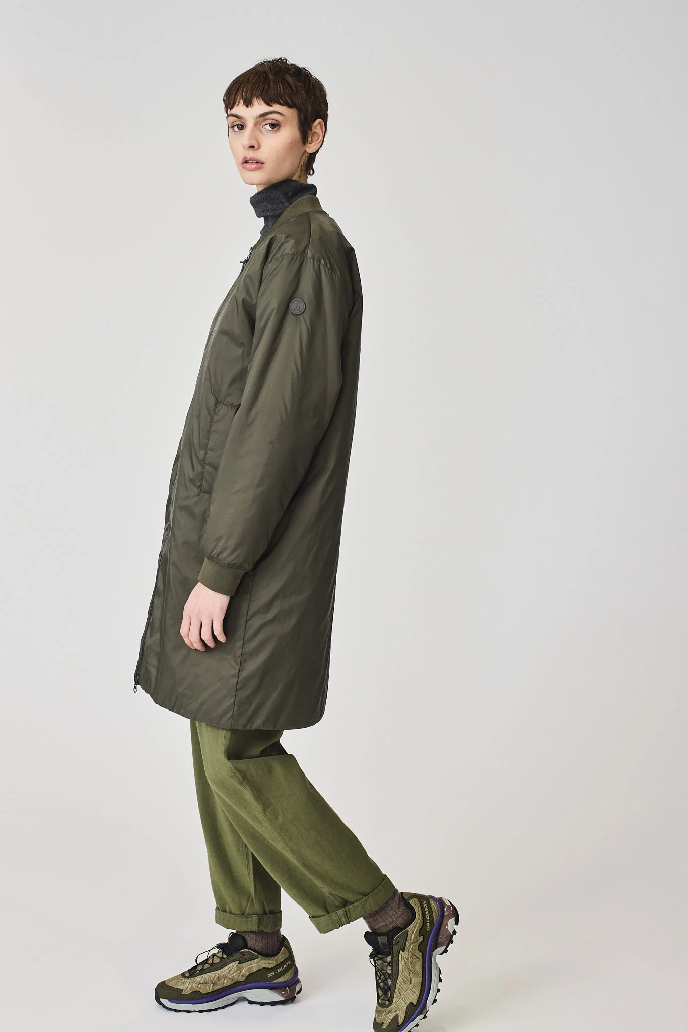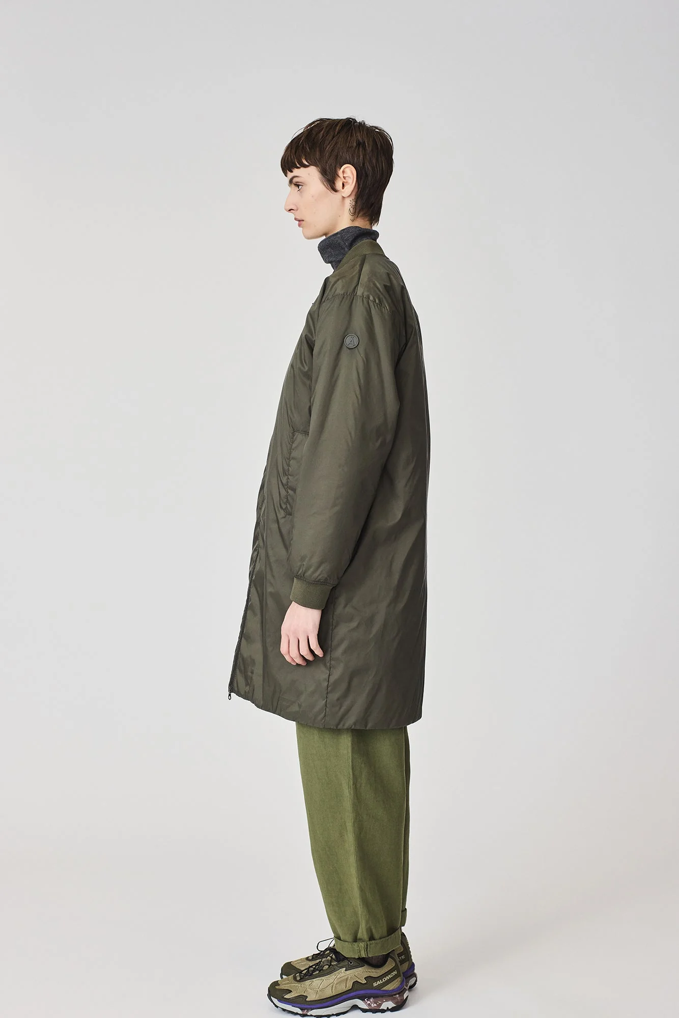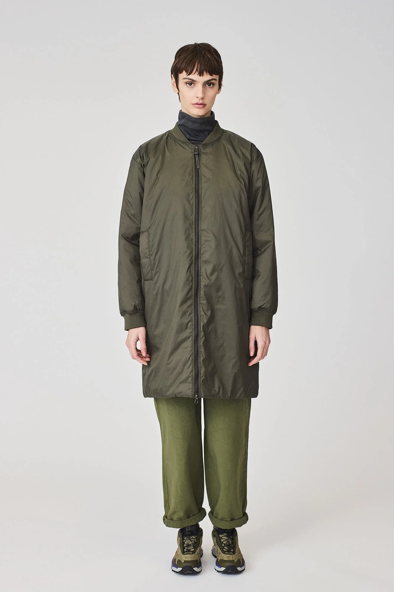 Confeccionada en nylon 100 % repelente al agua, la Pyouh es la versión larga de la chaqueta bomber Aandhee, que ofrece mayor cobertura sin perder el estilo limpio y atemporal. Ligeramente acolchada para proporcionar el abrigo justo, presenta detalles clásicos de bomber como puños y cuello de canalé, cremallera metálica frontal de doble cursor y bolsillos ribeteados.