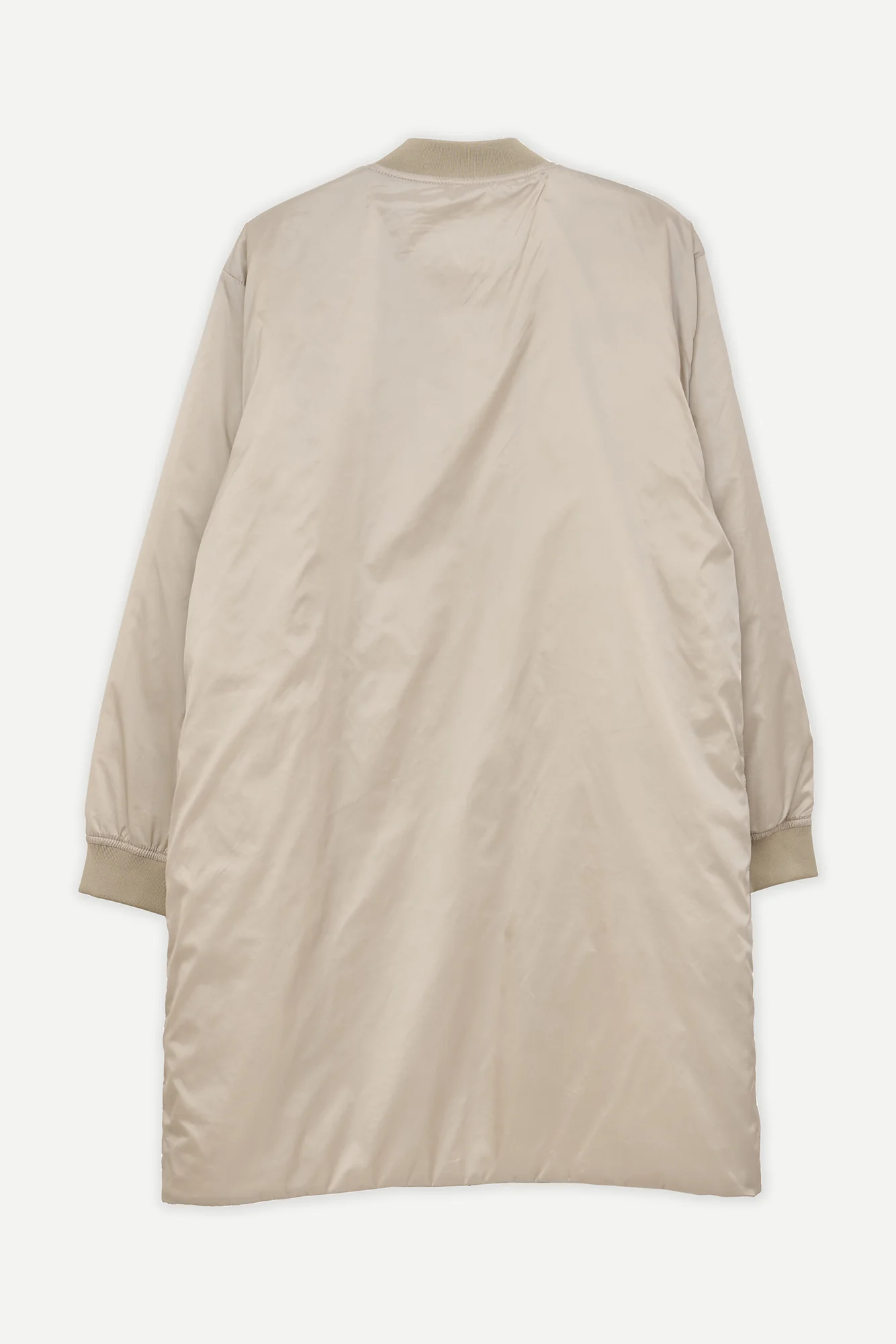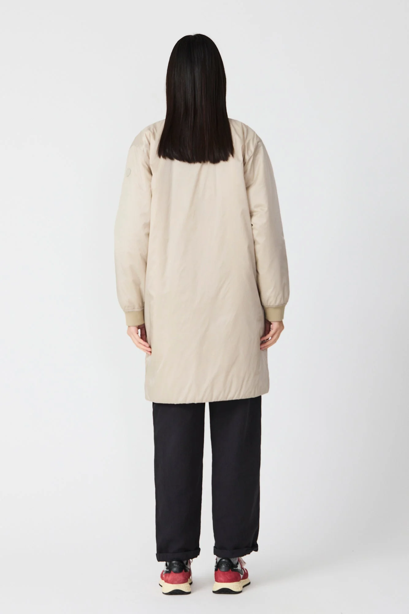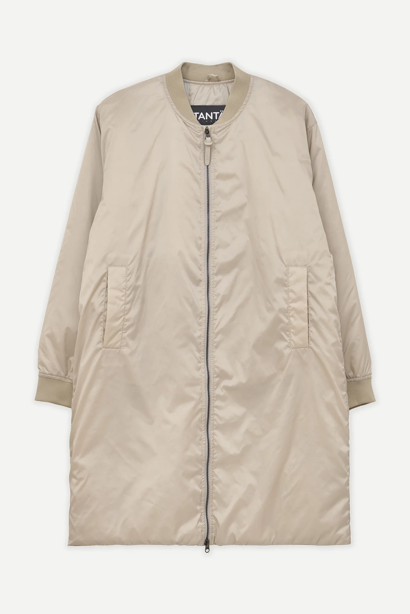 Confeccionada en nylon 100 % repelente al agua, la Pyouh es la versión larga de la chaqueta bomber Aandhee, que ofrece mayor cobertura sin perder el estilo limpio y atemporal. Ligeramente acolchada para proporcionar el abrigo justo, presenta detalles clásicos de bomber como puños y cuello de canalé, cremallera metálica frontal de doble cursor y bolsillos ribeteados.