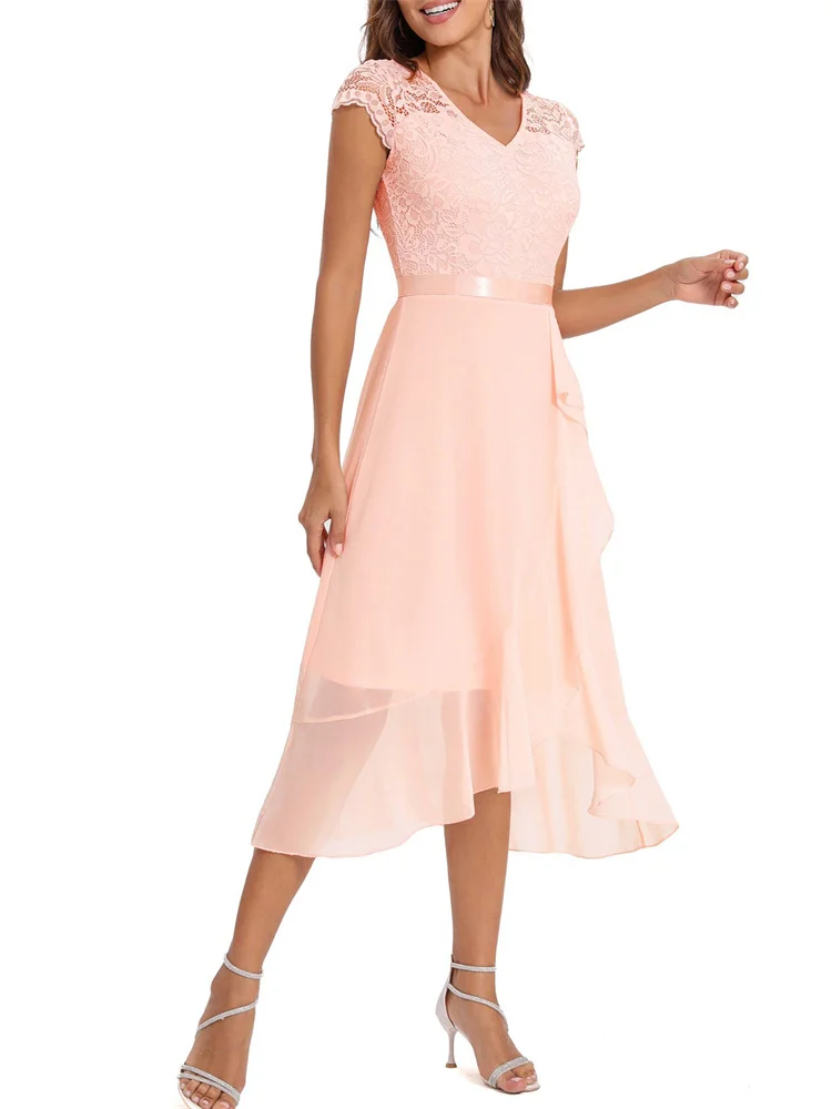 Robe cocktail rose poudré dentelle : Opaline