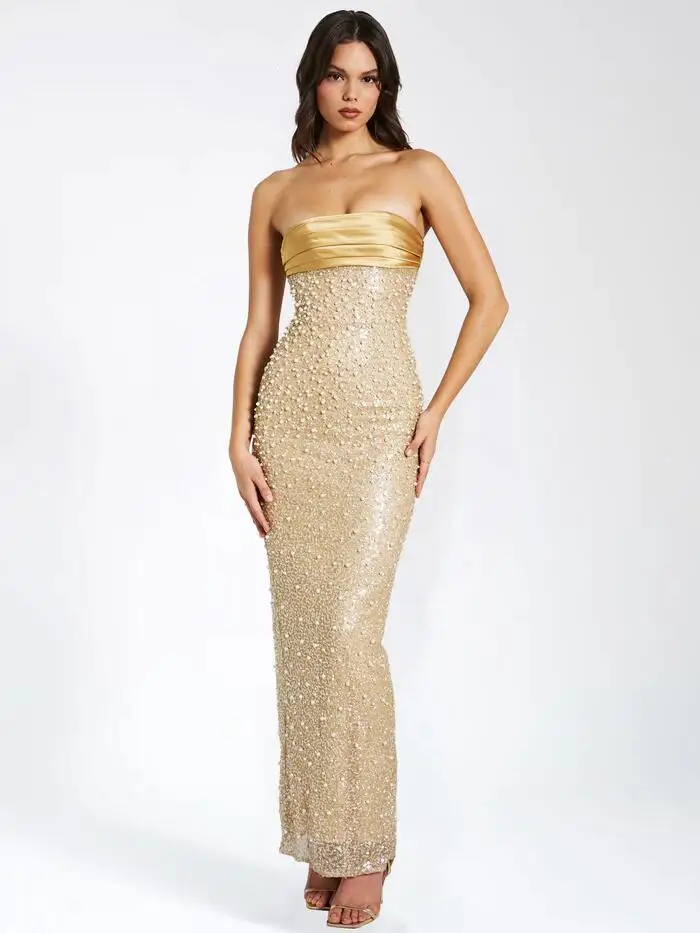 Robe bustier dorée élégante et scintillante : Éclat
