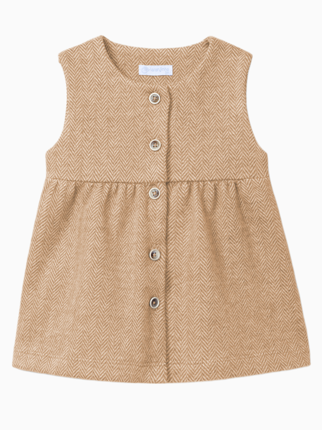 Robe chasuble enfant fille en maille à chevrons – Beige