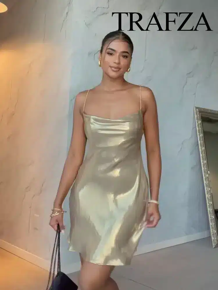 Sublimez votre silhouette avec la robe courte satinée spaghetti