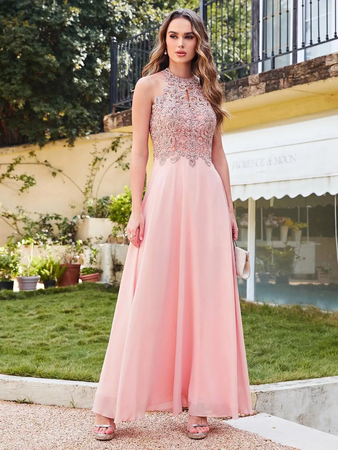 Laissez-vous séduire par notre robe de bal rose poudré col montant, conçue pour sublimer vos occasions spéciales avec élégance et raffinement. Parfaite pour celles qui souhaitent ajouter une touche de sophistication à leur garde-robe de soirée, cette robe associe confort et style intemporel.