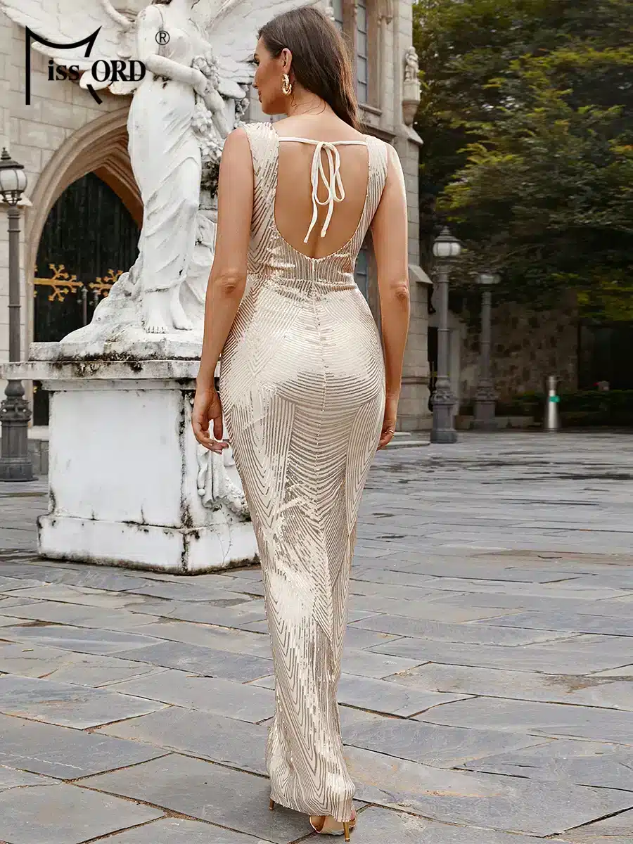 Sublimez votre look avec la robe de cocktail longue dorée