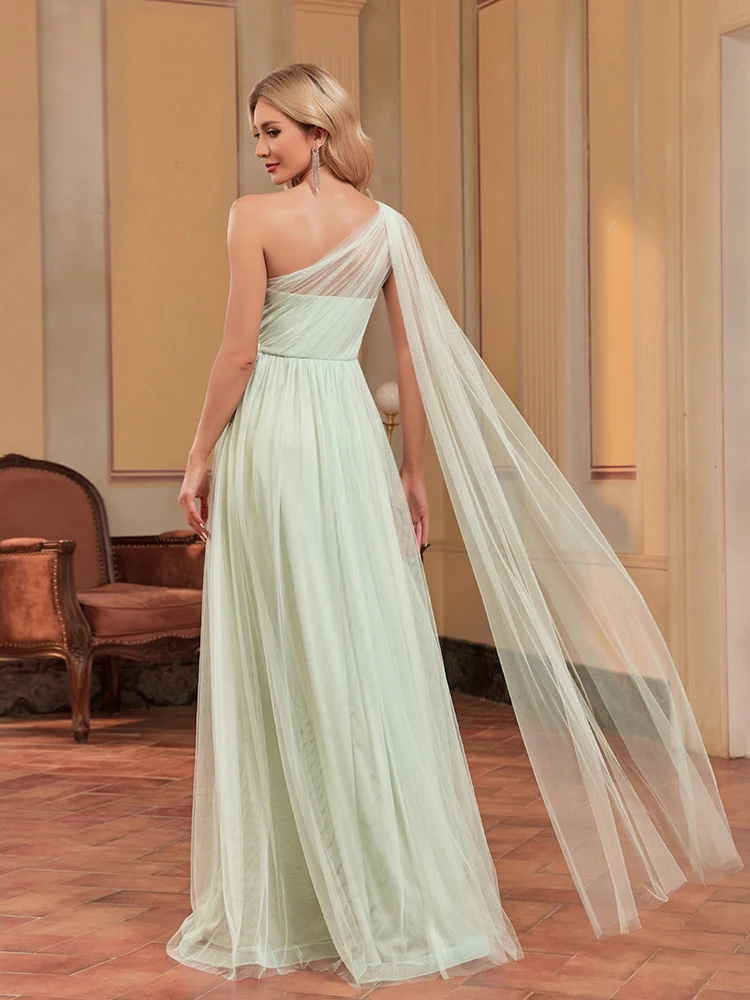 - Coupe et style : Élégance assurée avec une coupe adaptée aux soirées formelles. Son design à épaule dénudée avec voile apporte une touche sophistiquée.