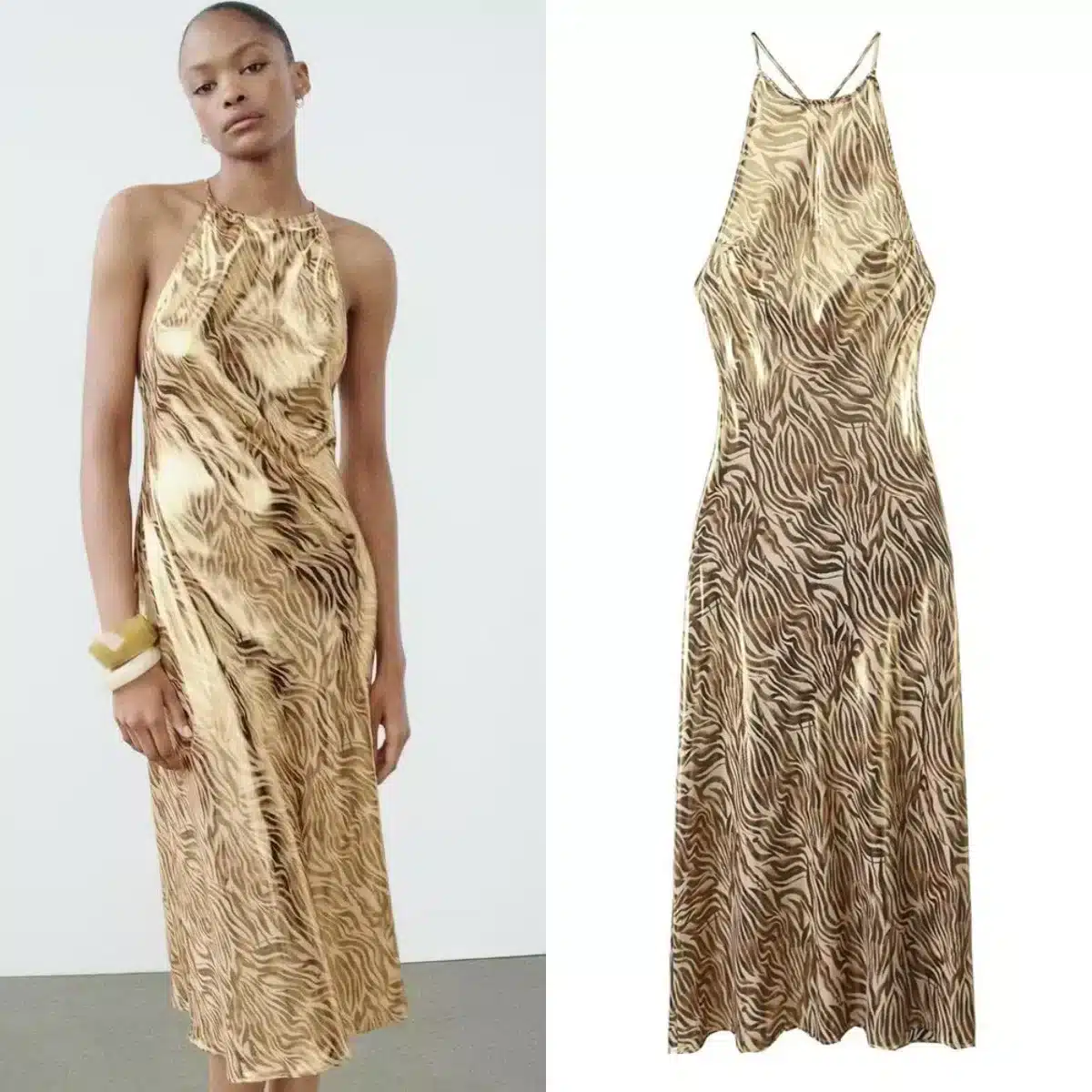 Si vous souhaitez étoffer votre garde-robe avec un vêtement chic et tendance, la robe léopard doré est un choix parfait. Son motif emblématique et sa couleur dorée apportent un charme unique à votre look, idéal pour se démarquer lors de n’importe quelle occasion. Que ce soit pour une soirée entre amis ou une journée décontractée en ville, cette robe saura captiver.