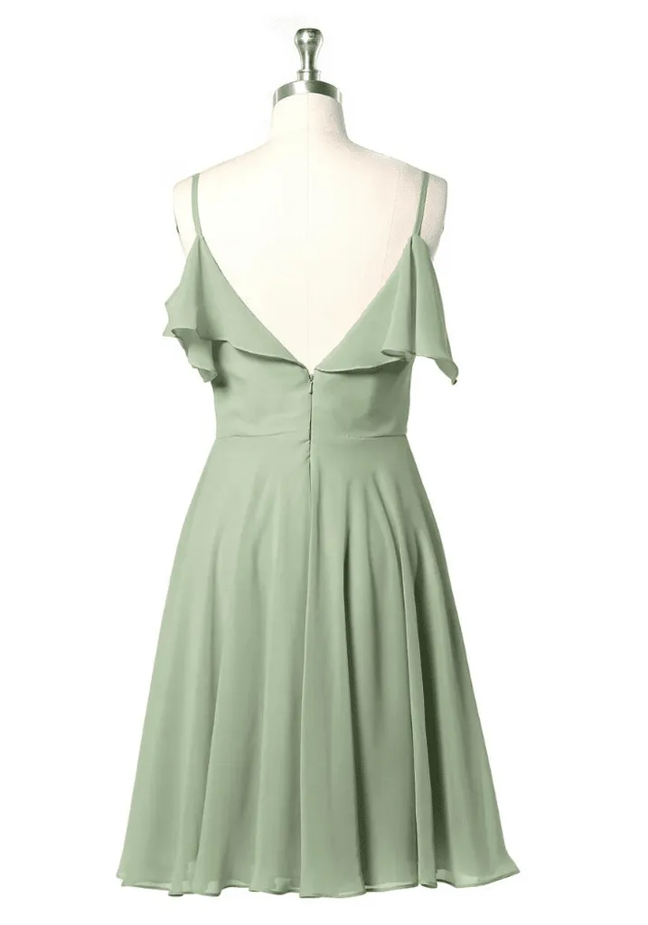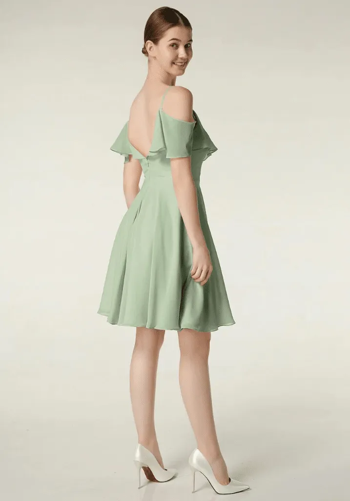 Robe mousseline vert d’eau avec épaules dénudées : Acacia