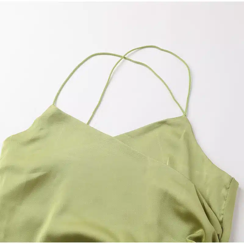 La robe en soie vert d’eau est la parfaite alliée pour un look sans effort pendant les saisons chaudes du printemps et de l’été. Sa couleur verte d’eau ajoute une note agréable et rafraîchissante à toutes vos apparitions, tout en restant facile à accessoiriser pour différentes saisons.