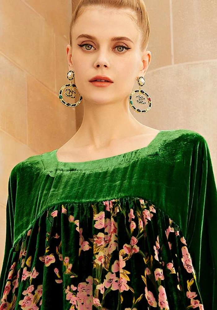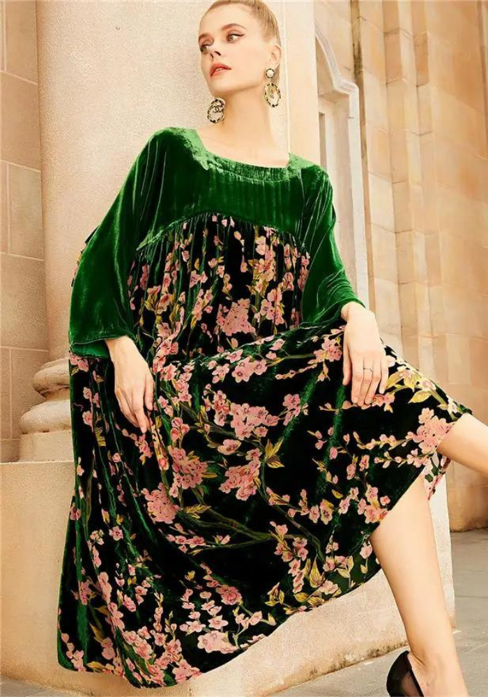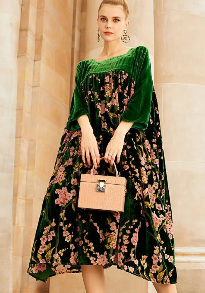Découvrez l’élégance de la robe trapèze velours fleurie