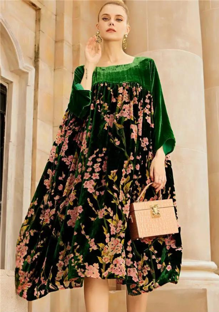 Robe trapèze en velours à motif floral : luxueux toucher et silhouette flatteuse
