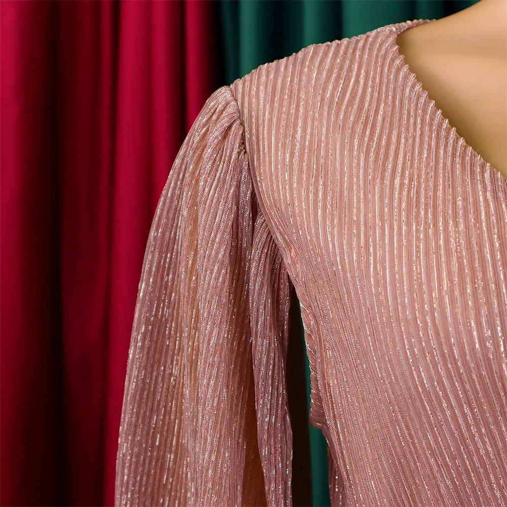Robe de cocktail avec manches longues en rose plissée : Élodie