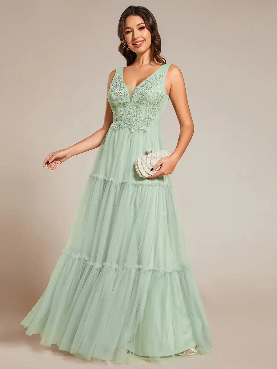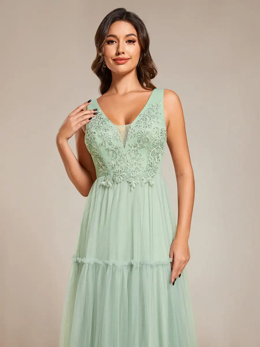 Robe tulle vert sauge élégante avec détails brodés : Elvira