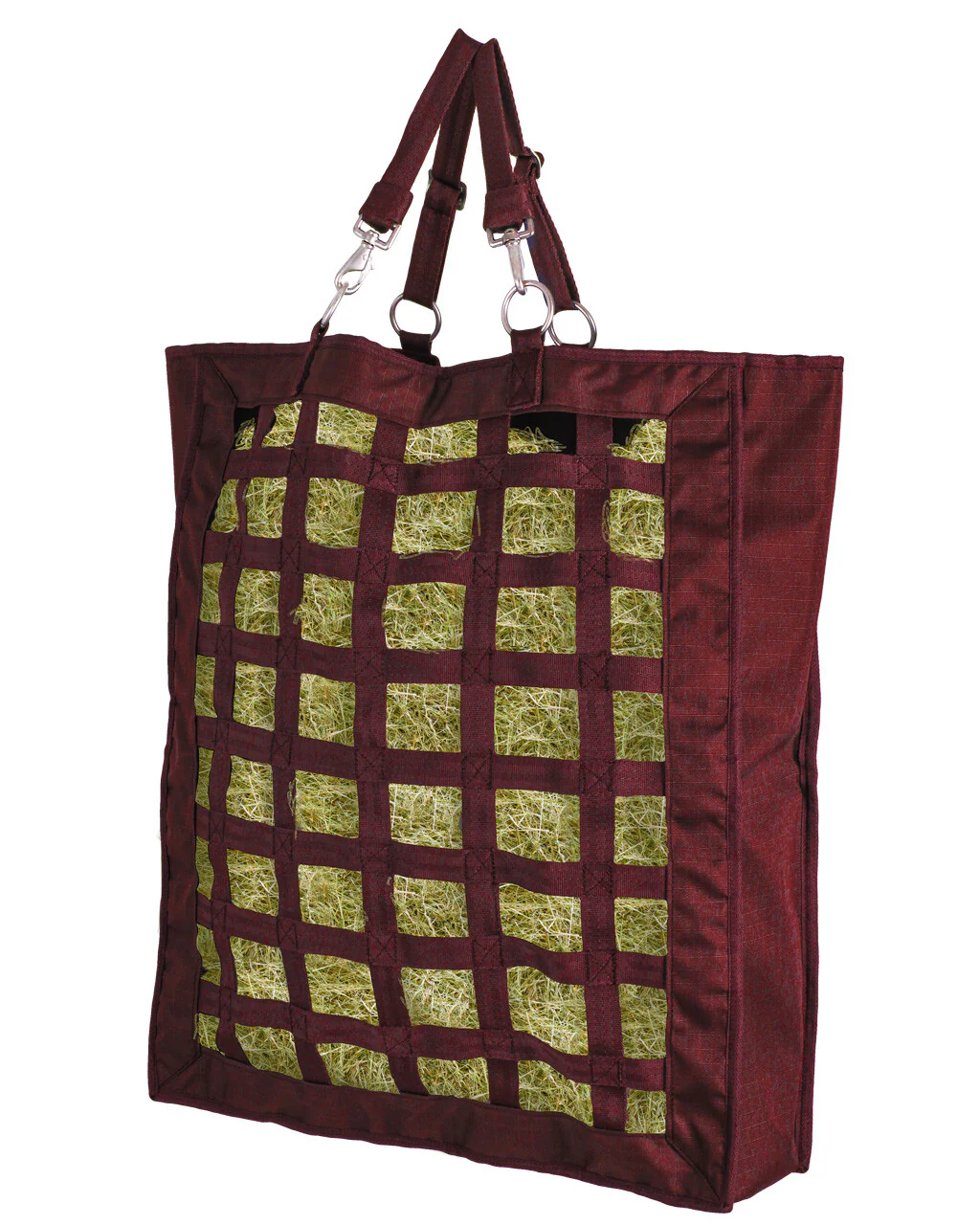Equipé d’un filet avec de larges bandes. Equipé de 4 anneaux avec boucles réglables ainsi que des mousquetons pour accrocher le sac. Les boucles peuvent aussi être retirées des anneaux afin de fermer le sac à foin.