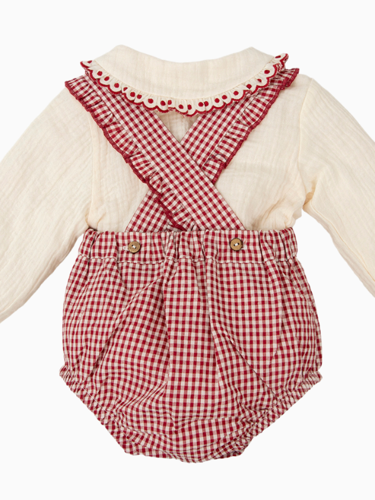 Salopette bébé fille vichy à froufrous – Rouge