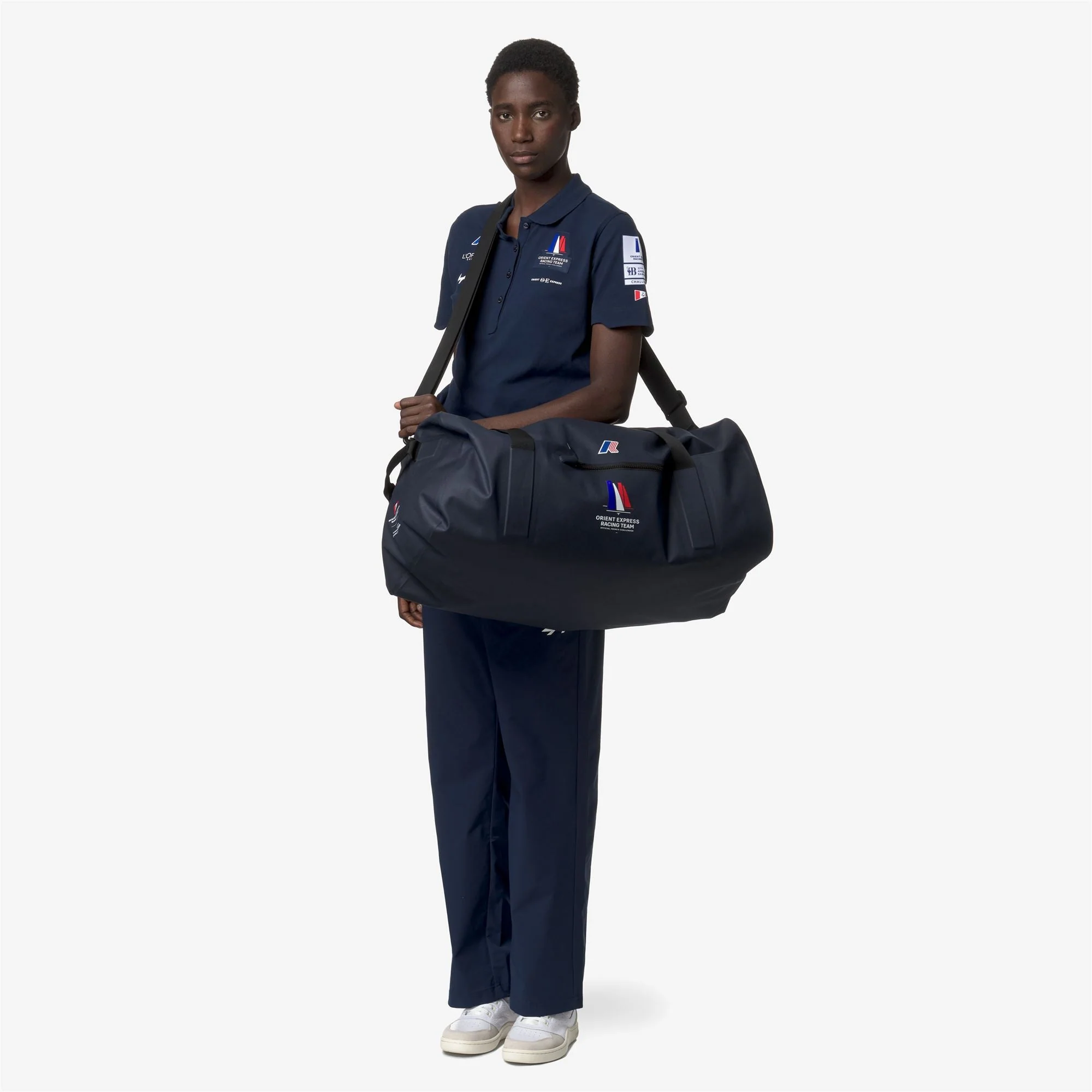 Sanary Orient Express Team AC est le sac de sport technique de K-Way, parfait pour chaque aventure loin de chez soi, créé pour célébrer le parrainage de l’équipe Orient Express Racing pour la 37e Coupe de l’America. Fabriqué en tissu technique imperméable avec revêtement en PVC, il présente un système d’ouverture principal avec une fermeture éclair imperméable et un tireur personnalisé avec le logo K-Way. Poignées latérales en gros-grain et renfort avec fermeture à pression. Bandoulière amovible en ruban gros-grain. Poche latérale externe avec fermeture éclair suivant le design rappelant les vêtements d’extérieur. Poche intérieure en filet avec fermeture éclair. Logos imprimés de K-Way, Orient Express, Coupe de l’America et sponsors. Dimensions : H 27 x L 60 x L 33 cm.