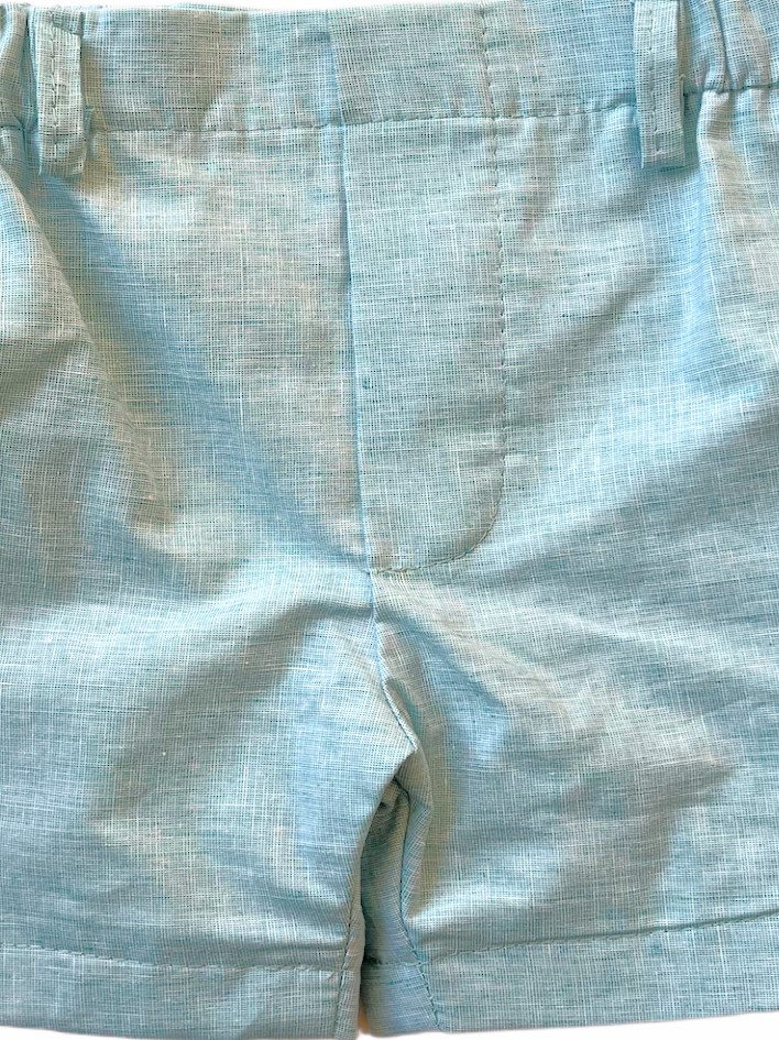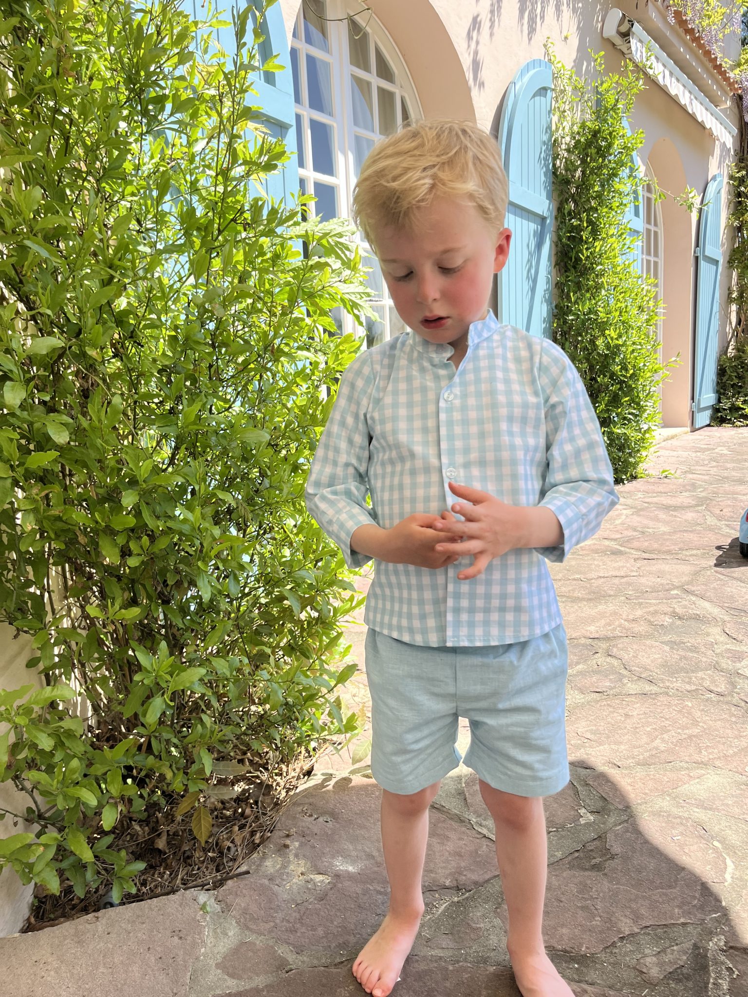 Ce short est une pièce polyvalente qui se marie aisément avec différents styles. Associé à notre chemise à carreaux turquoise, il crée une tenue raffinée idéale. Pour un look plus décontracté, il peut être porté avec un simple t-shirt en coton ou un polo. Sa couleur douce et élégante permet de nombreuses associations, faisant de ce short un indispensable du dressing estival des petits garçons.
