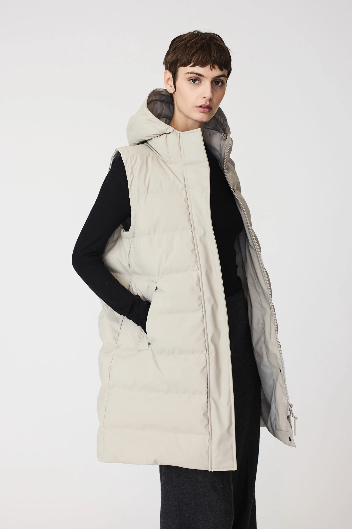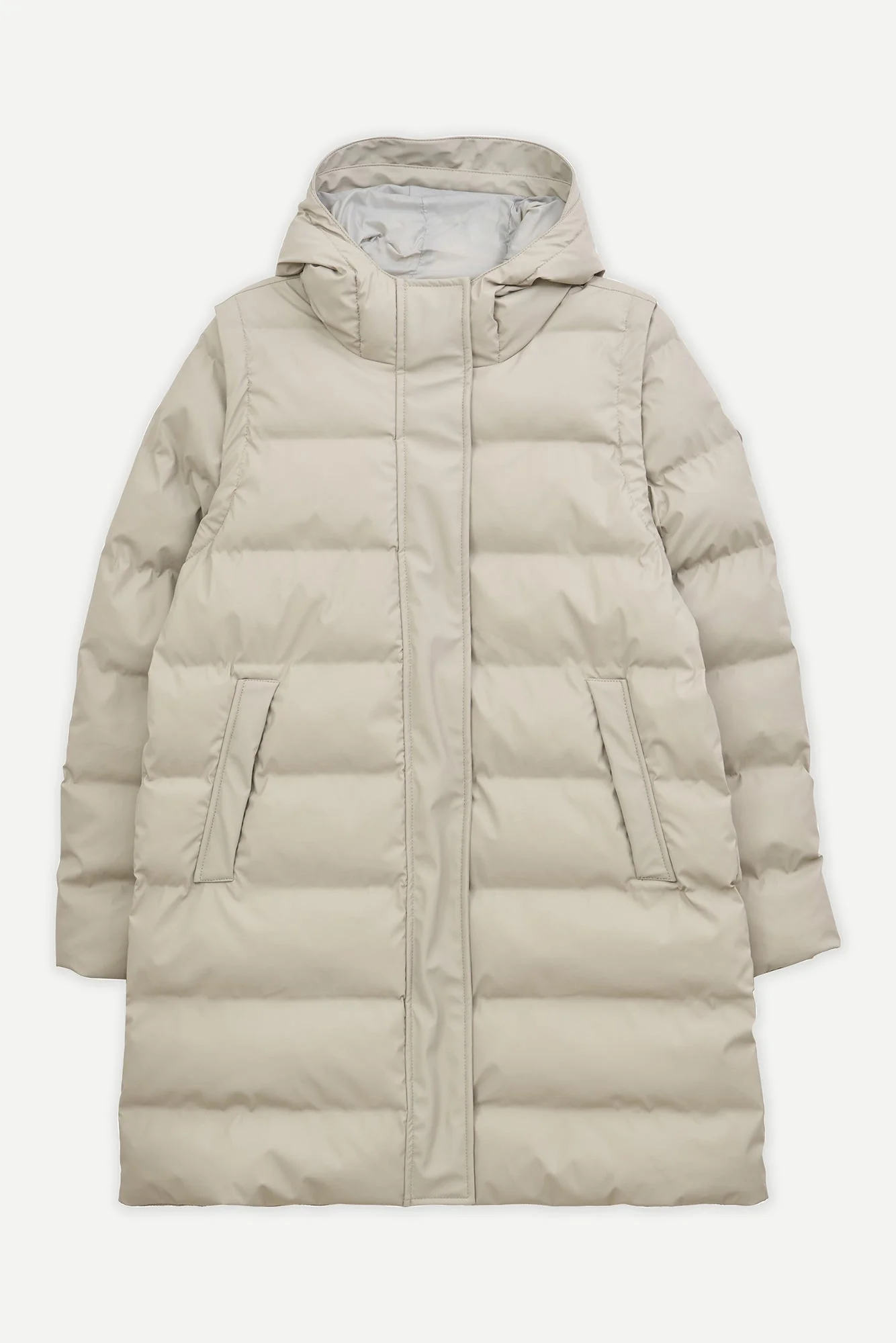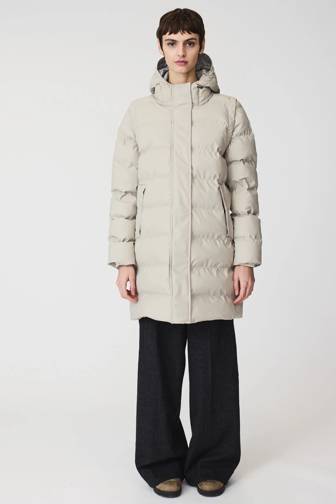 Esta prenda 2 en 1 se transforma fácilmente de un abrigo acolchado a un chaleco de entretiempo gracias a sus mangas desmontables. Cuenta con capucha fija, cremallera frontal impermeable de doble cursor con tapeta y bolsillos ribeteados que combinan estilo y funcionalidad.