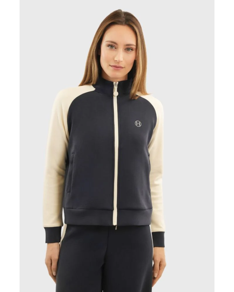 Sweat zippé femme au style moderne Matière douce au toucher agréable à porter Coupe droite pour une silhouette naturelle Col montant pour plus de confort et de chaleur Manches contrastées qui apportent du caractère au modèle Zip retourné pour un détail soigné Logo Harcour sur la poitrine côté gauche Bouton argenté Harcour dans la nuque, […]