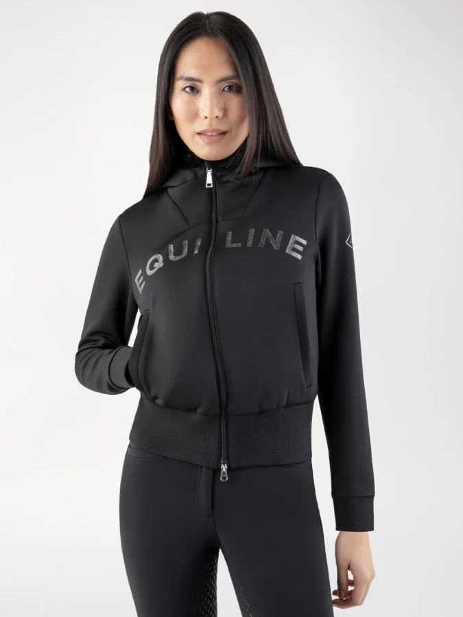 Chaud et moderne, ce sweat zippé pour femme allie confort et style. Doublé d’une éco-fourrure douce et isolante, il garantit respirabilité et chaleur pendant les saisons froides. Equipé d’une fermeture éclair à double curseur et de deux poches zippées pour plus de praticité, le pull présente des poignets côtelés doux et un ourlet pour une tenue confortable. Le logo scintillant Equiline sur la poitrine et l’épaule apporte une touche d’élégance raffinée.