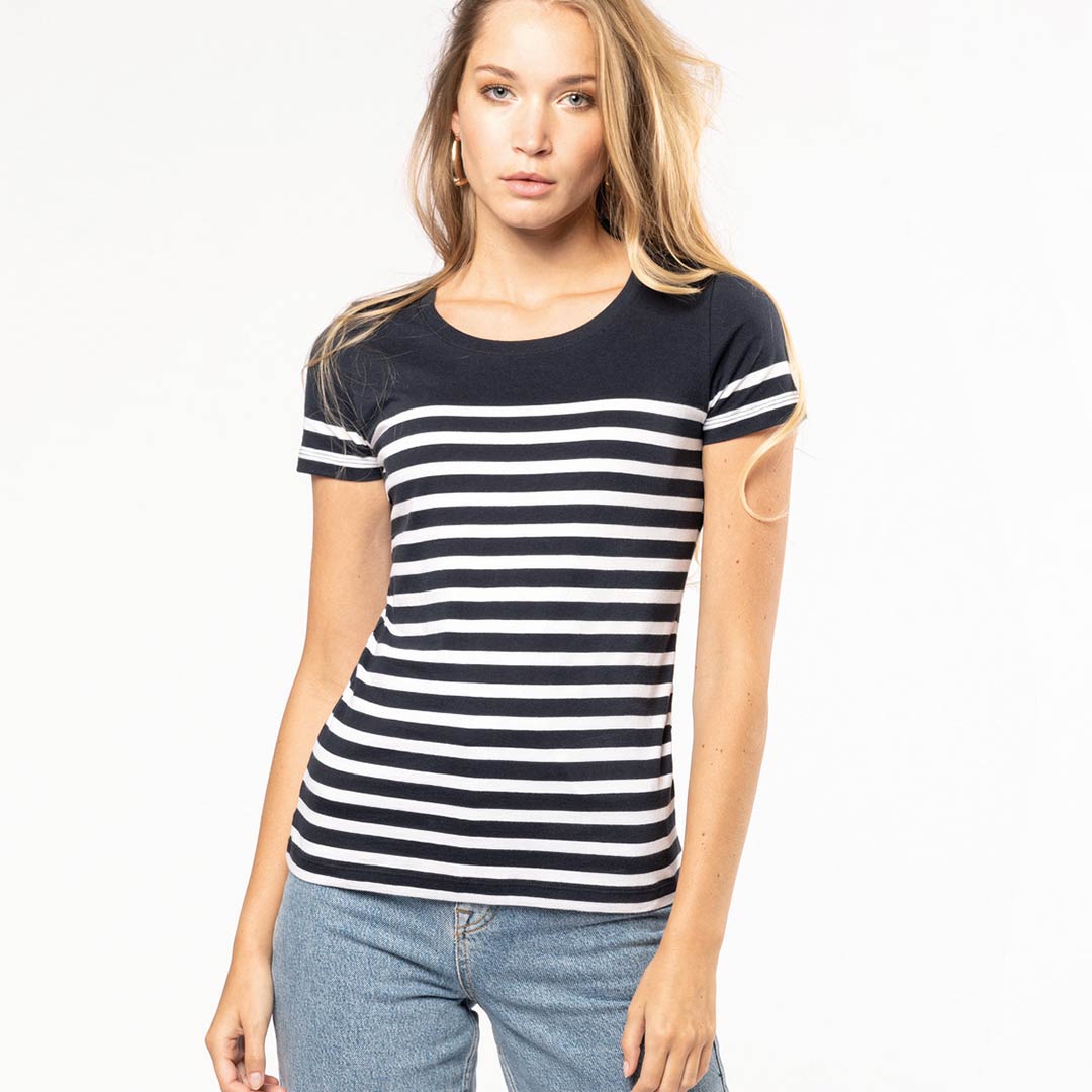 100% coton biologique. Coupe droite. Lavage aux enzymes. Encolure ronde avec bord-côte 1×1. Rayures tricotées. Bande de propreté au col. Finition double aiguille bas de manches et bas de vêtement. Pas d’étiquette de marque pour faciliter la personnalisation. Certifié STANDARD 100 by OEKO-TEX® N° CQ 1007/7, IFTH.