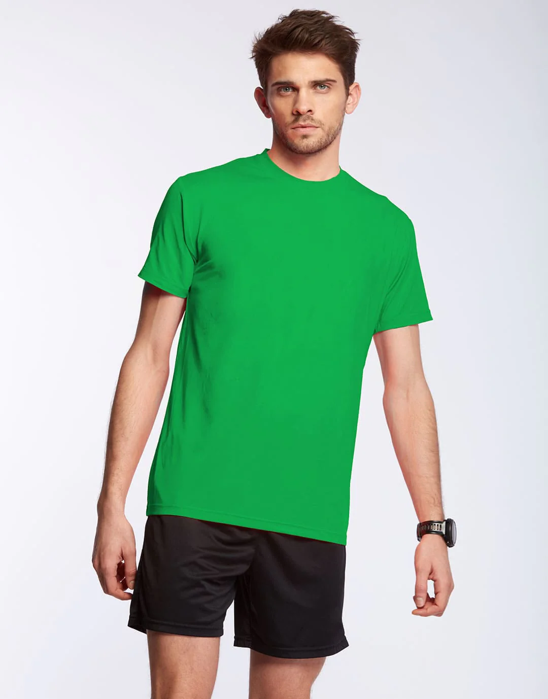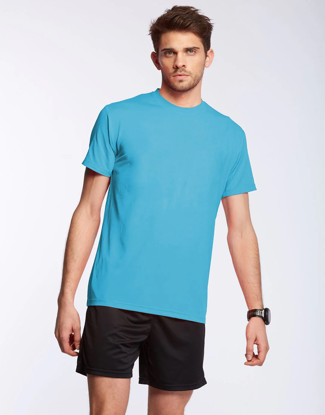 T-Shirt technique homme à col rond en matière polyester interlock 140g/m². Manches droites. Coupe cintrée. Matière très souple. Technologie Active Fit System : évacuation de la transpiration, traitement respirant et circulation de l’air.