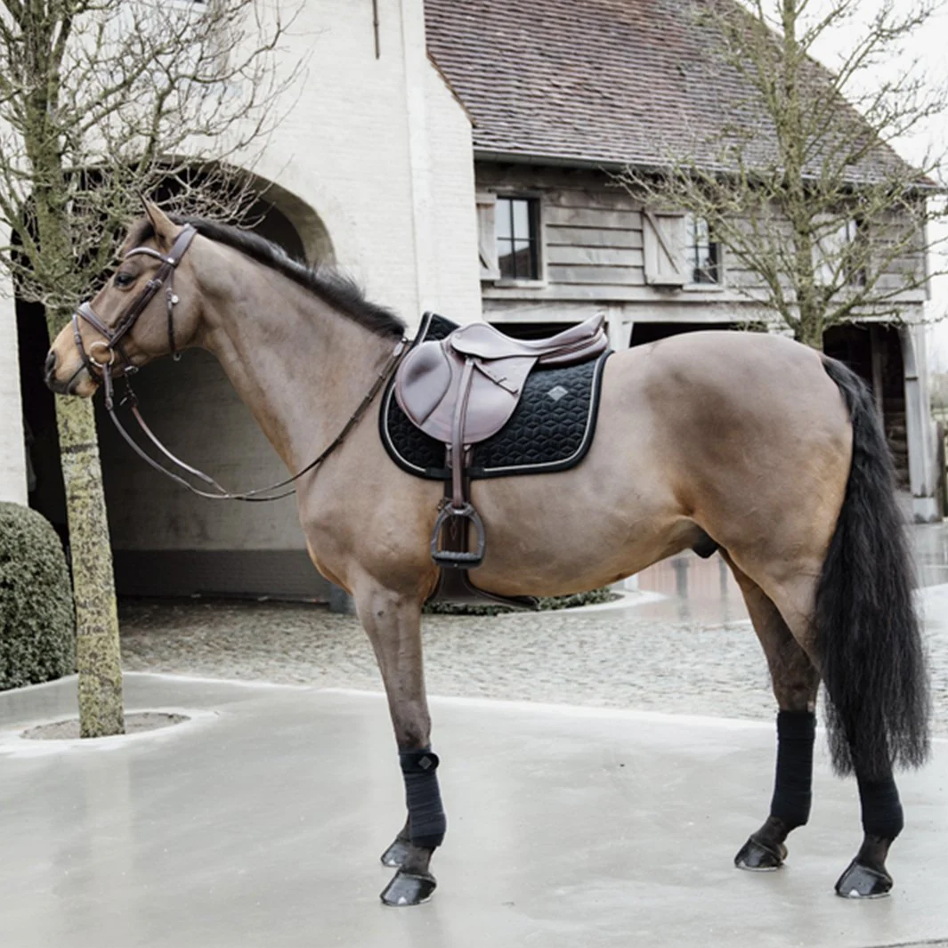 Ce tapis est idéal pour les cavaliers engagés dans le saut d’obstacles, les sessions intenses en carrière ou les compétitions CSO où le confort et la protection du cheval comptent autant que la performance. Que vous montiez en club ou en programme d’entraînement, le velours doux et le rembourrage efficace offrent une surface rassurante pour les jeunes chevaux et les sujets sensibles, tout en conservant une allure soignée en corde et main. Son espace broderie permet d’ajouter une touche personnelle ou l’emblème de votre écurie sans sacrifier le style global.